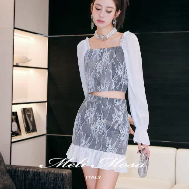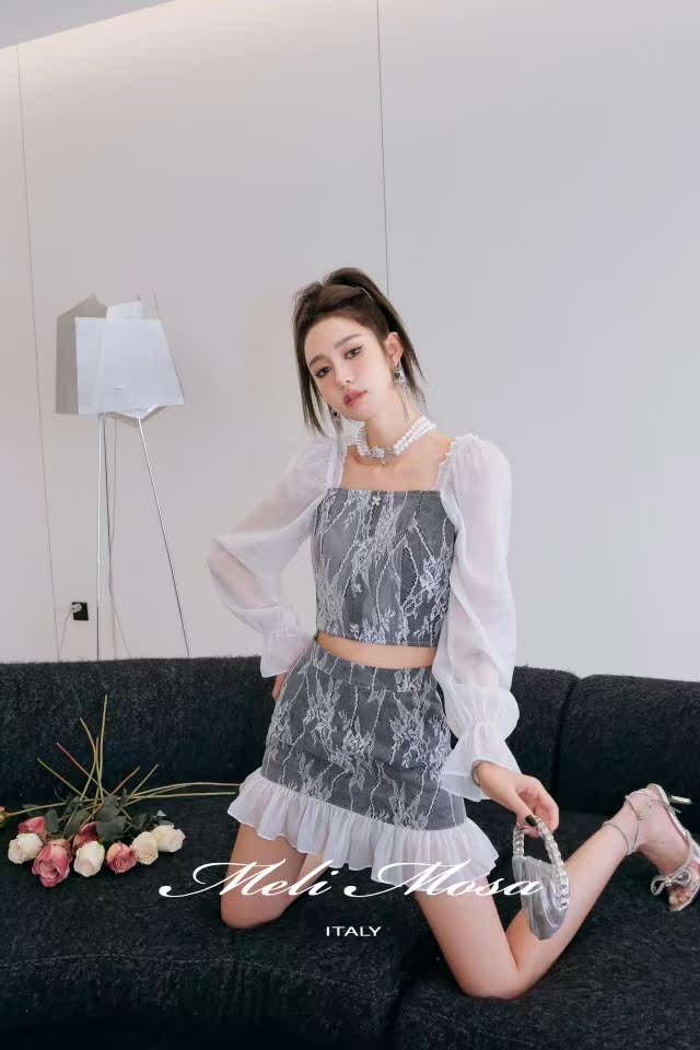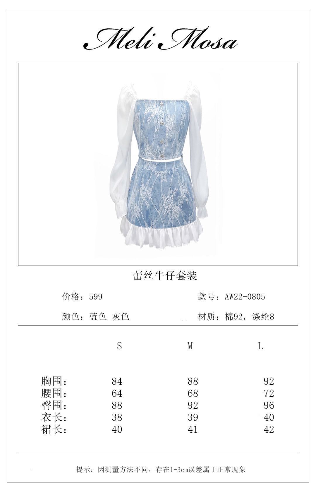 MeliMosa SS2312 蕾丝牛仔套装 灰