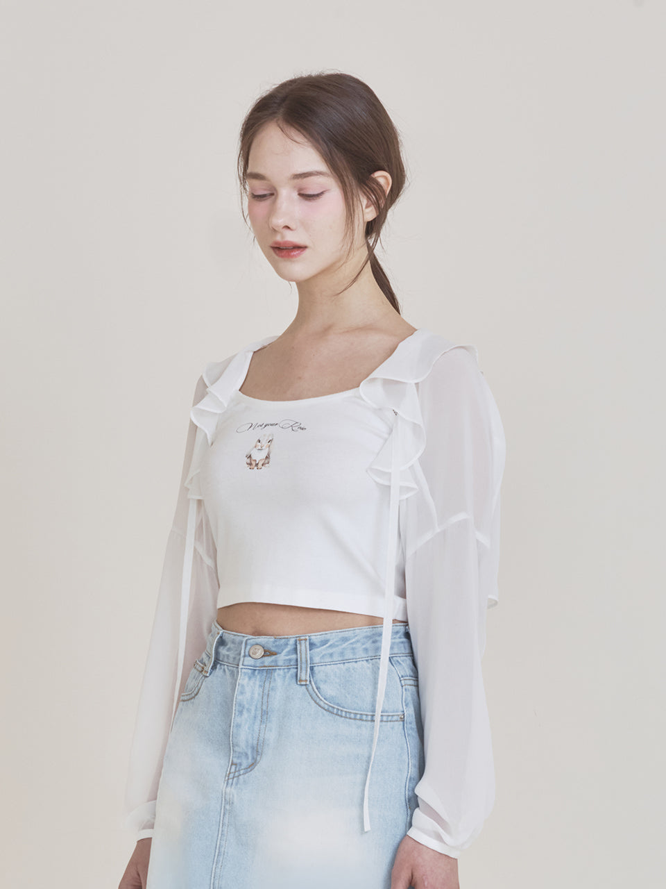 NOT YOUR ROSE 2505 Fairy chiffon bolero White