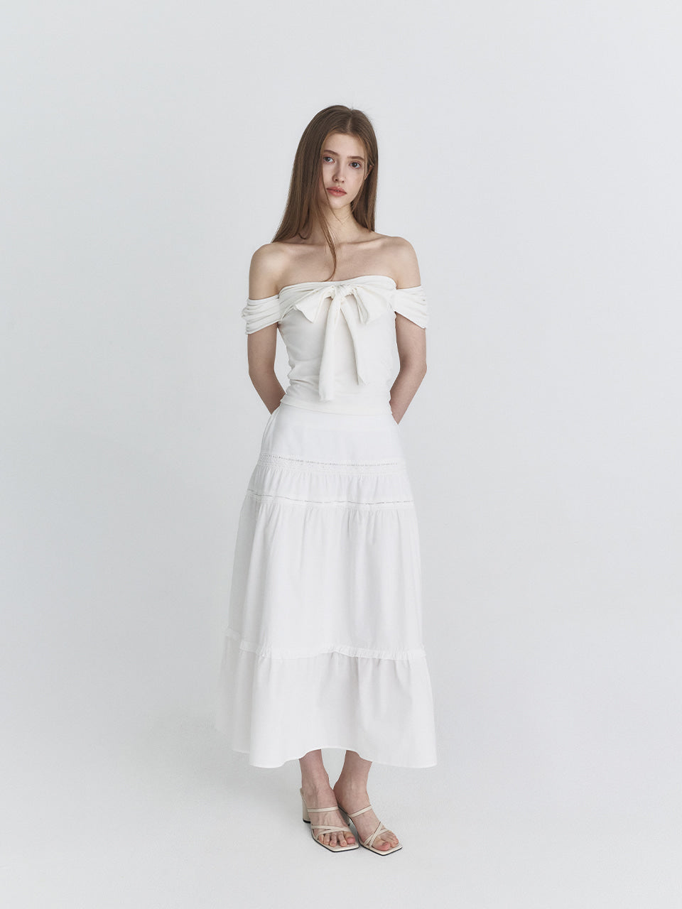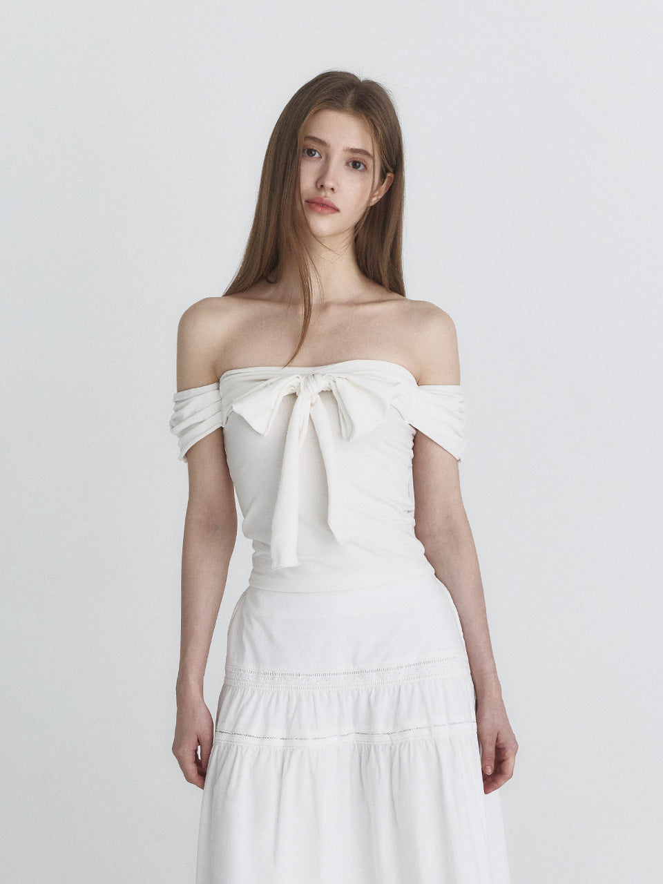 NOT YOUR ROSE 2603 Off shoulder ribbon top (Ivory)