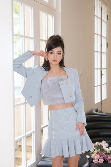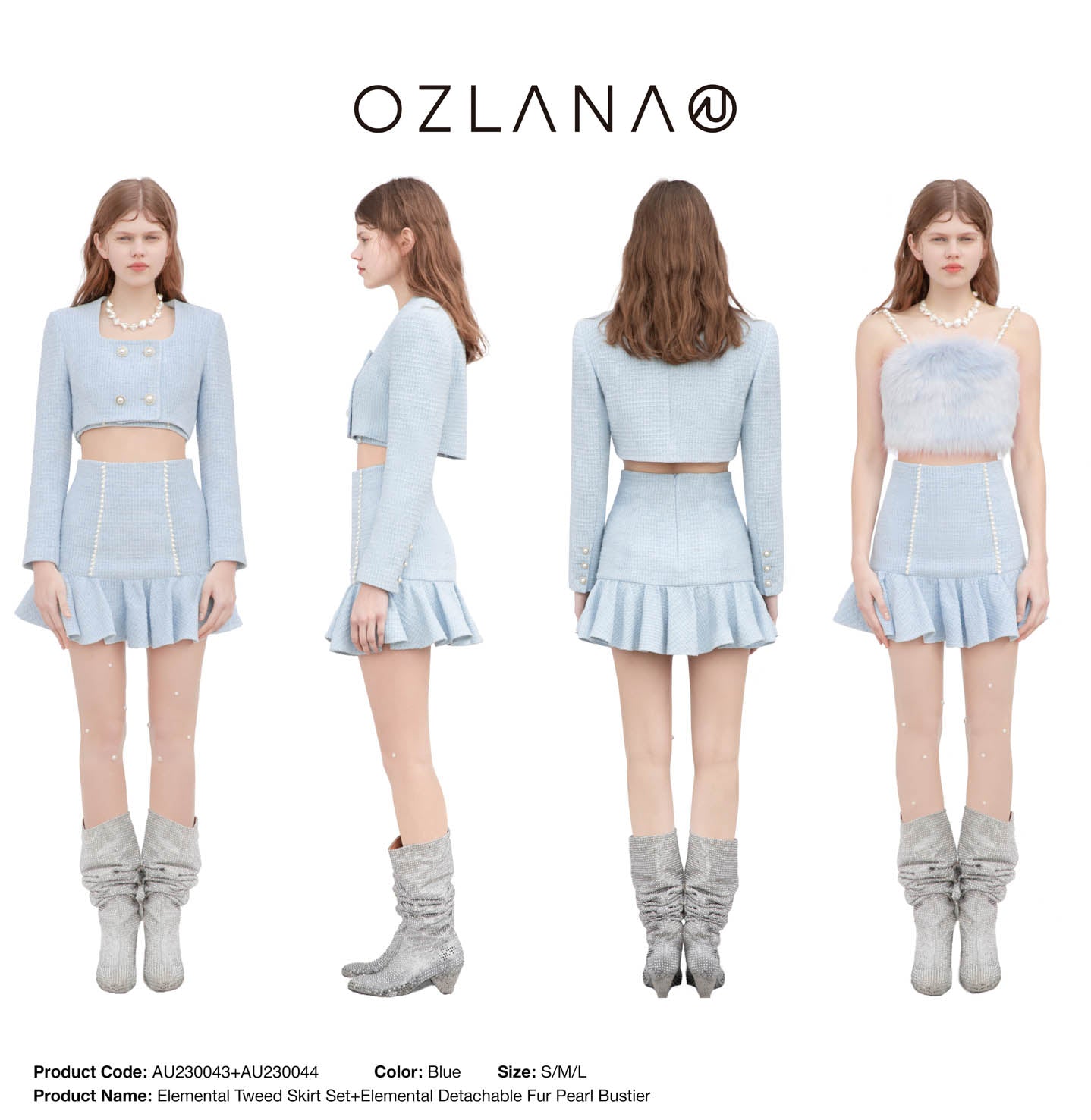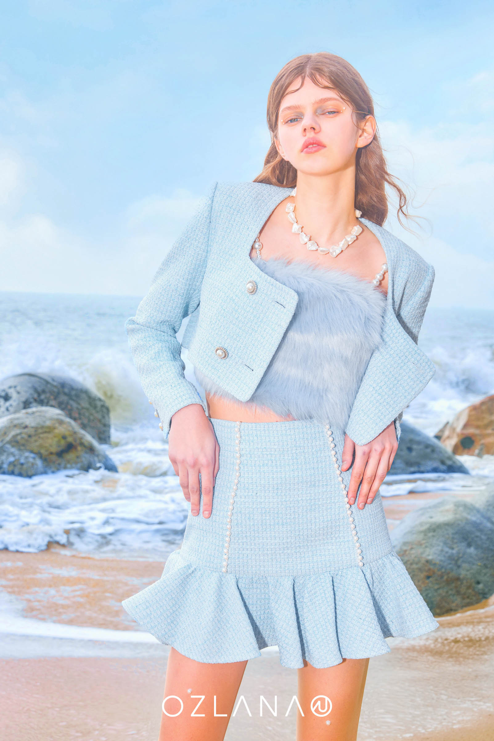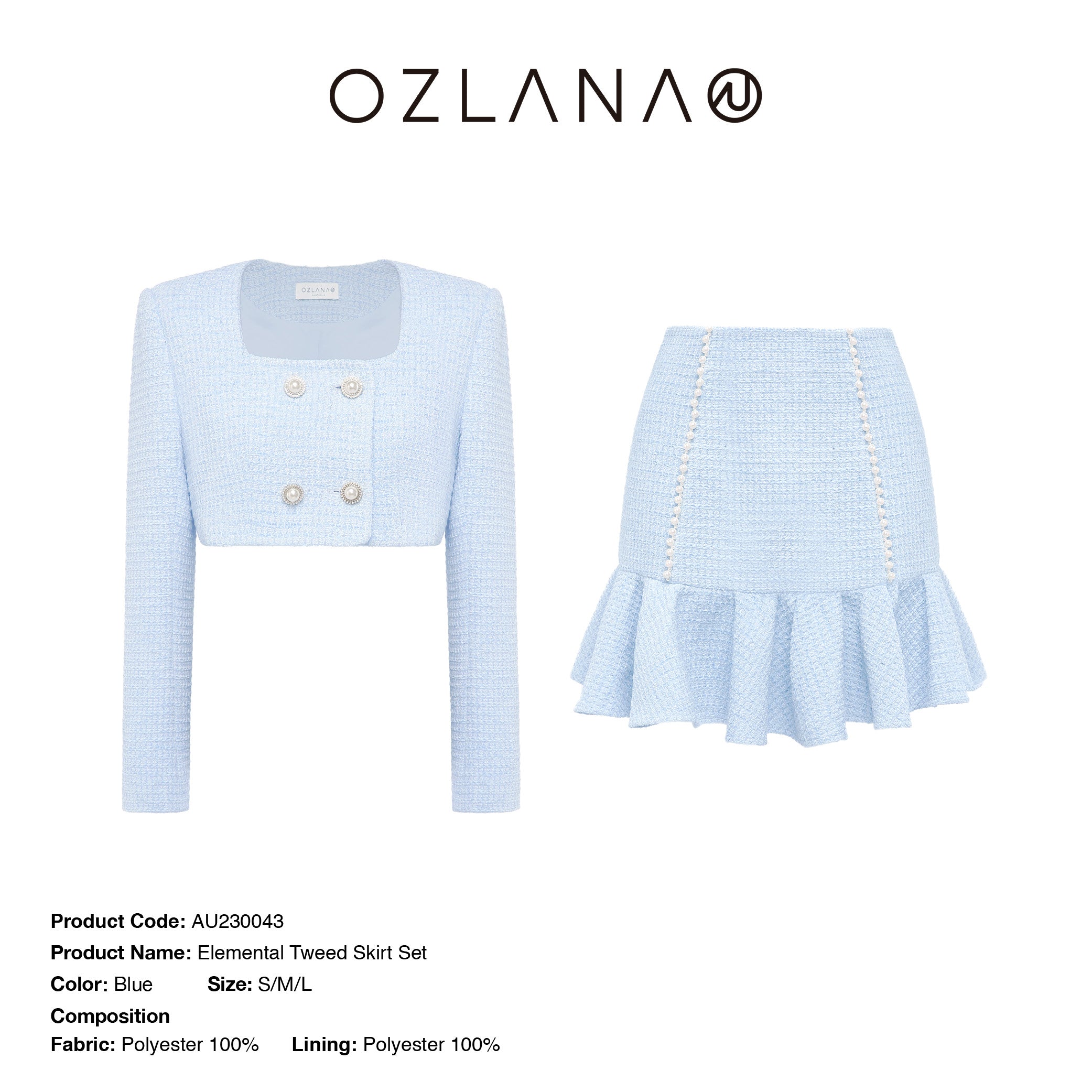 OZLANA SS2303 Elemental Tweed Skirt Set Blue