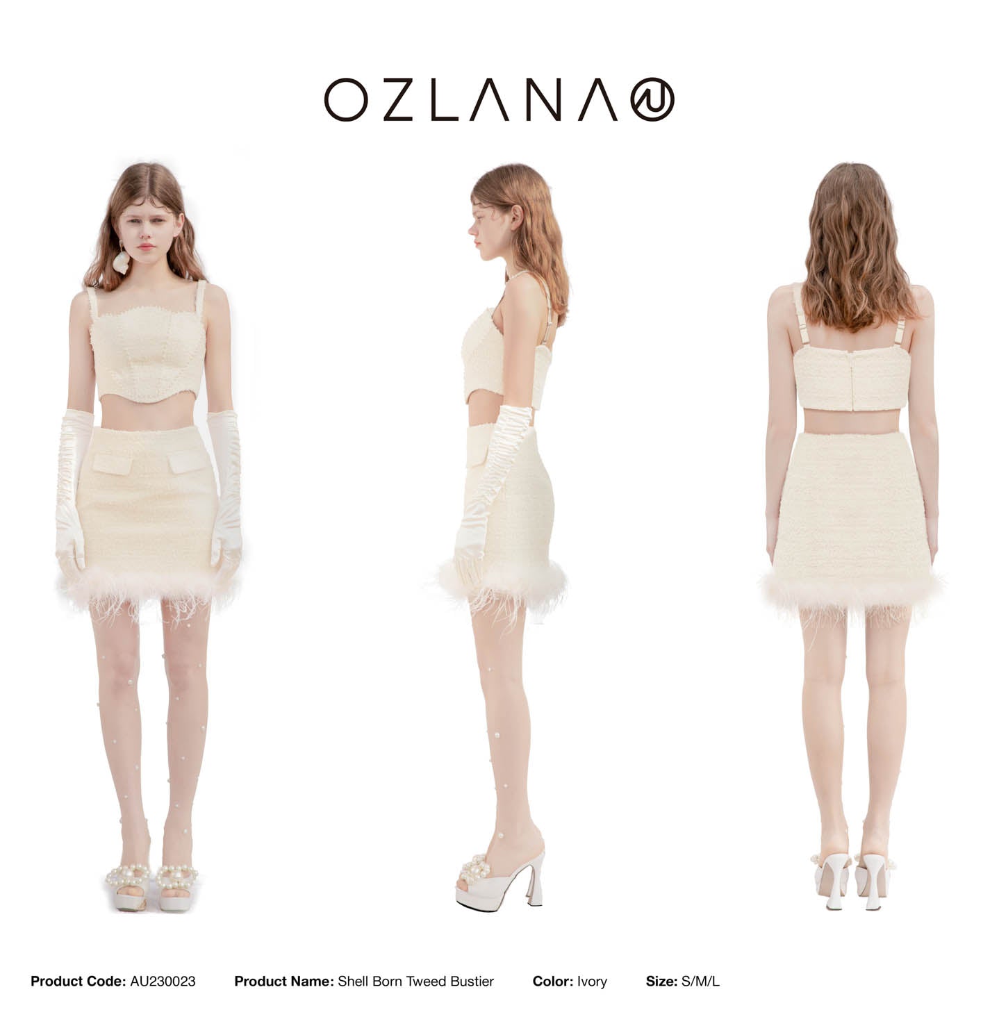 OZLANA SS2303 Shell Born Tweed Bustier Lvory