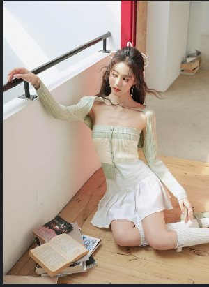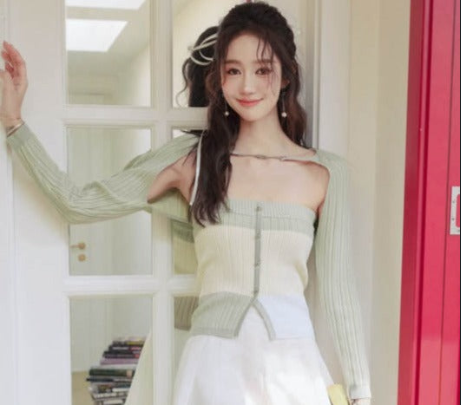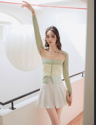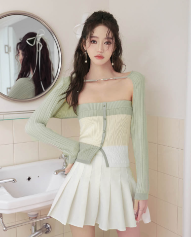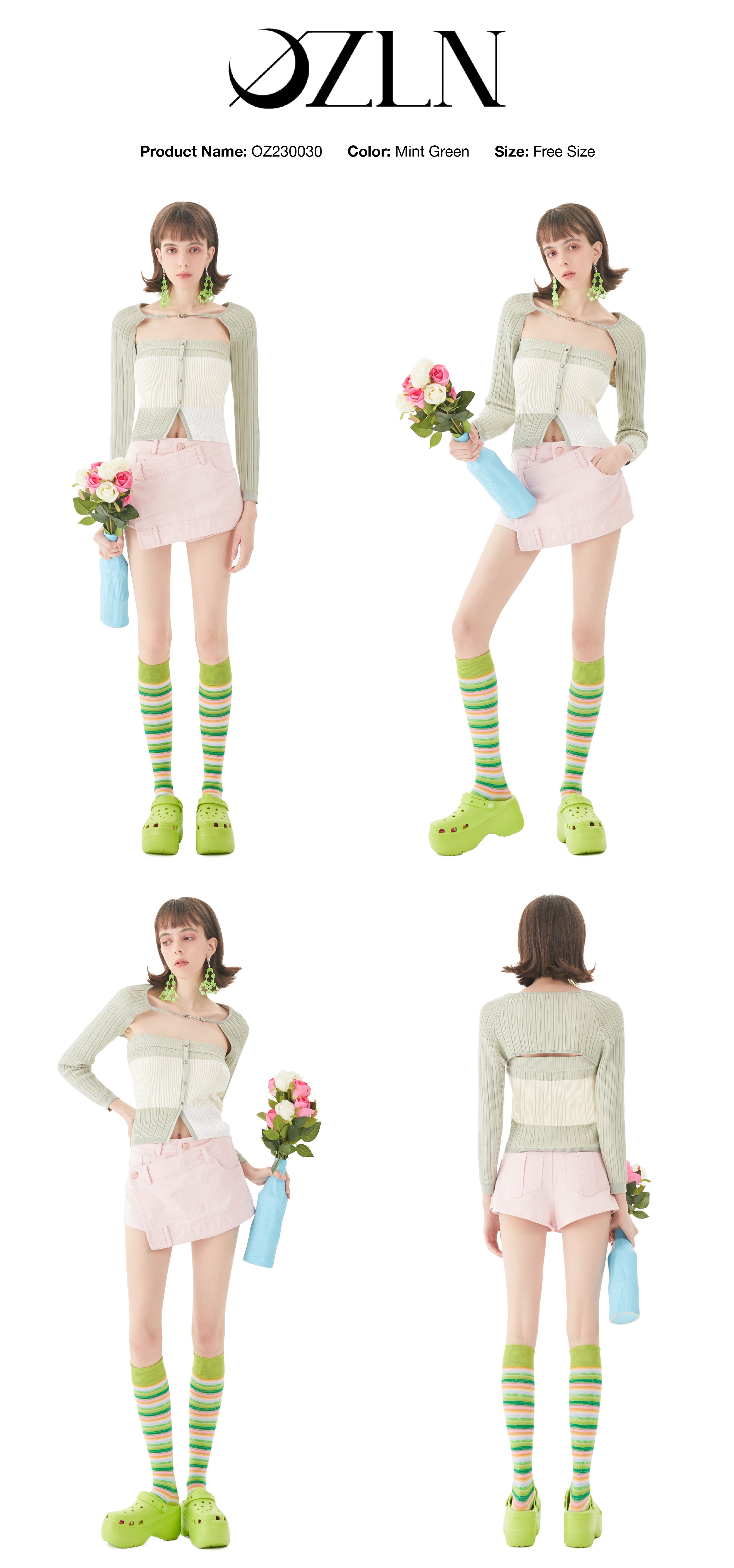 OZLANA SS2305 马卡龙色抹胸坎肩针织套装