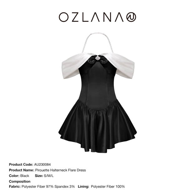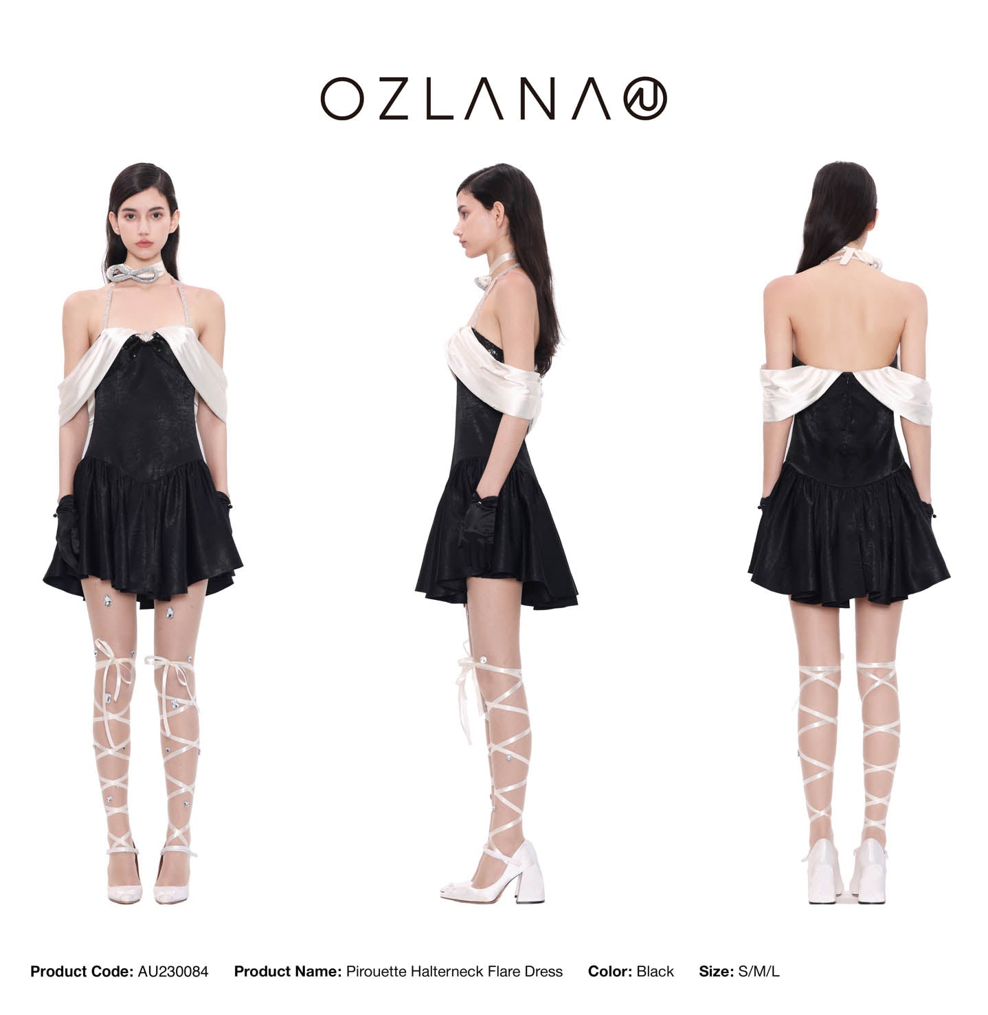 OZLANA SS2305 Pirouette Halterneck Flare Dress