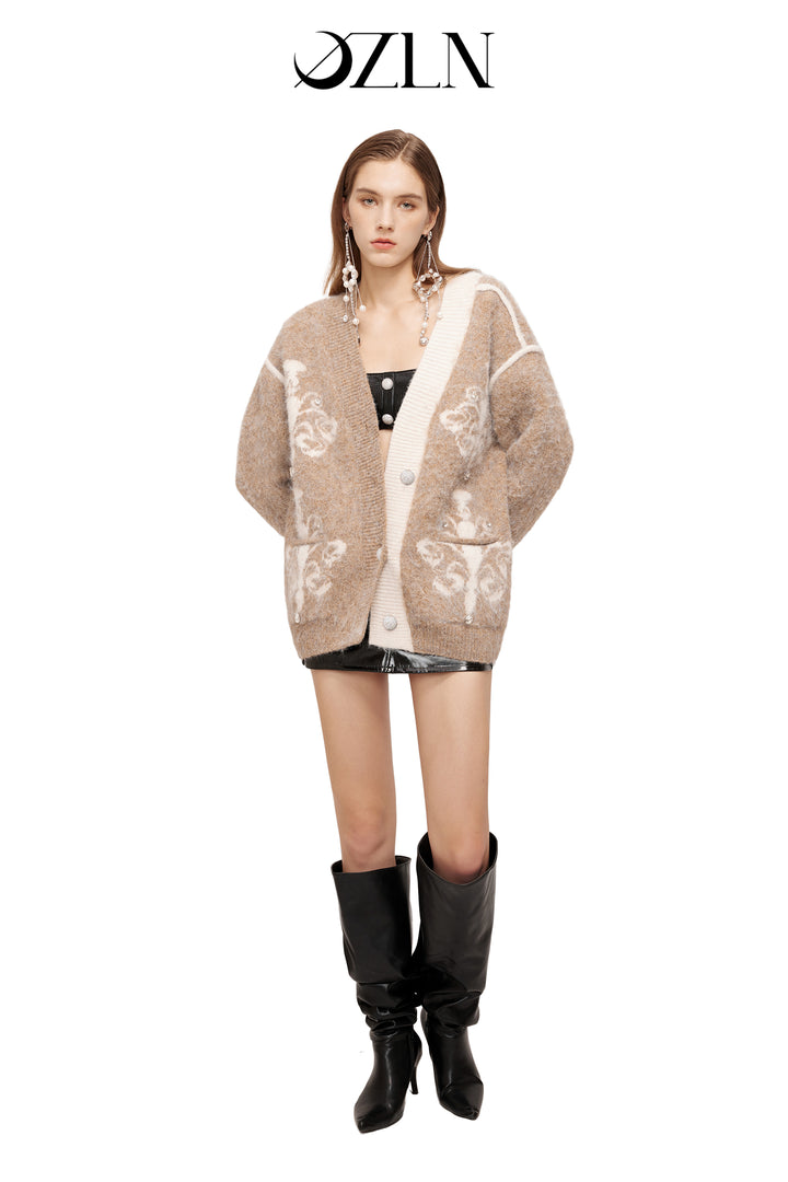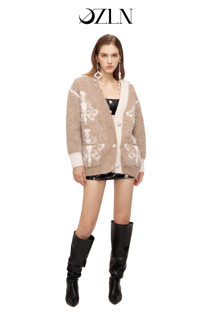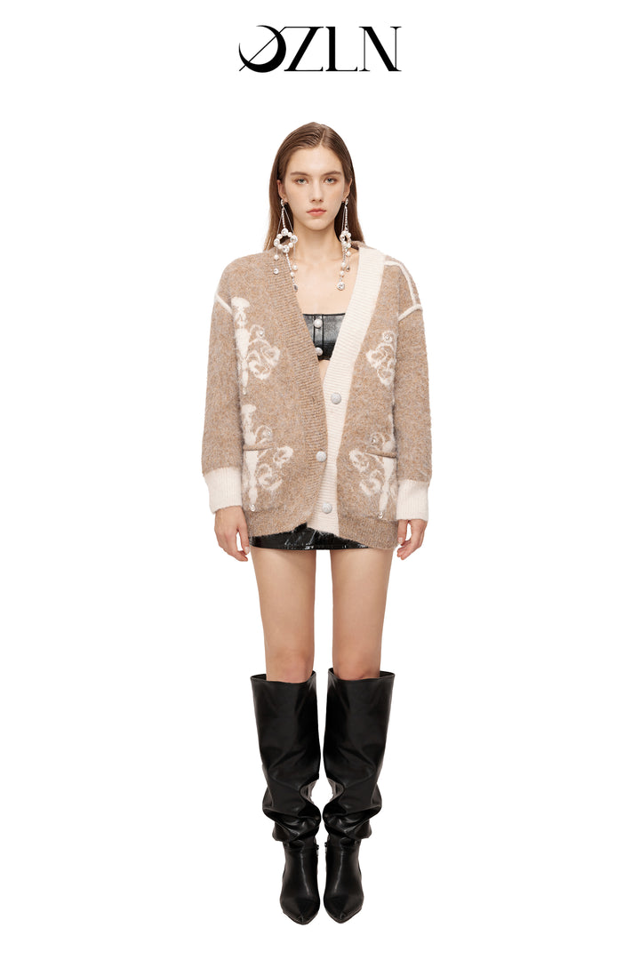OZLANA SS2310 Asymmetric Chandelier Knit Cardigan Camel
