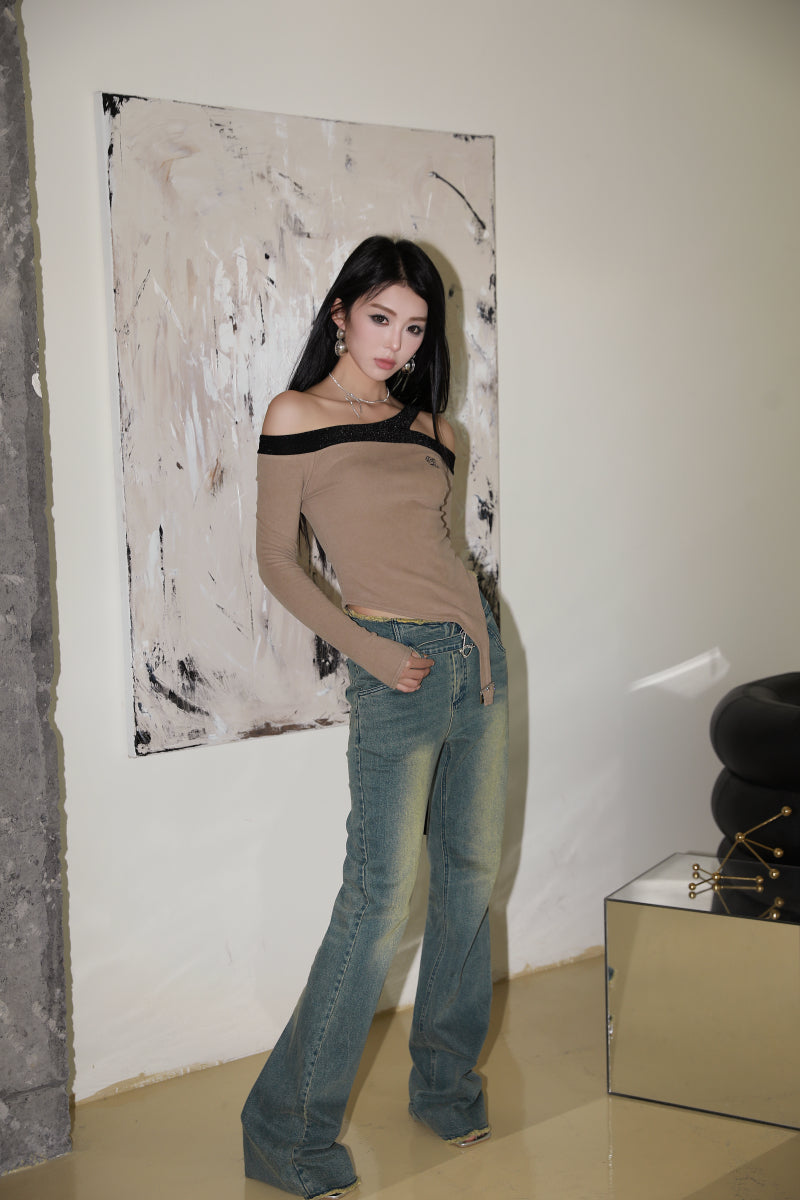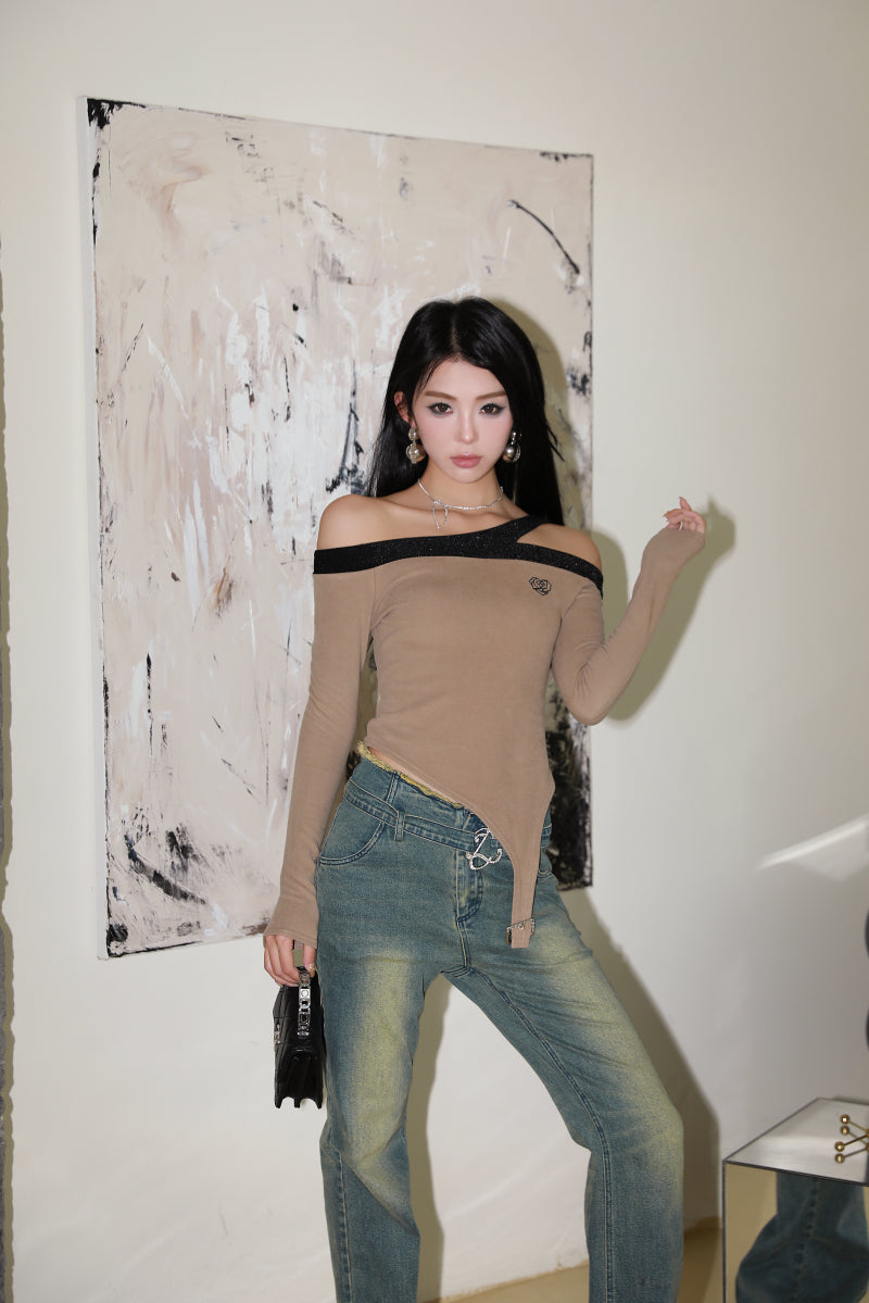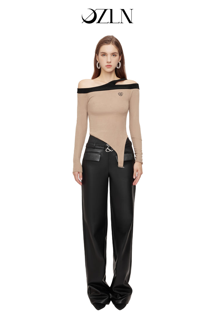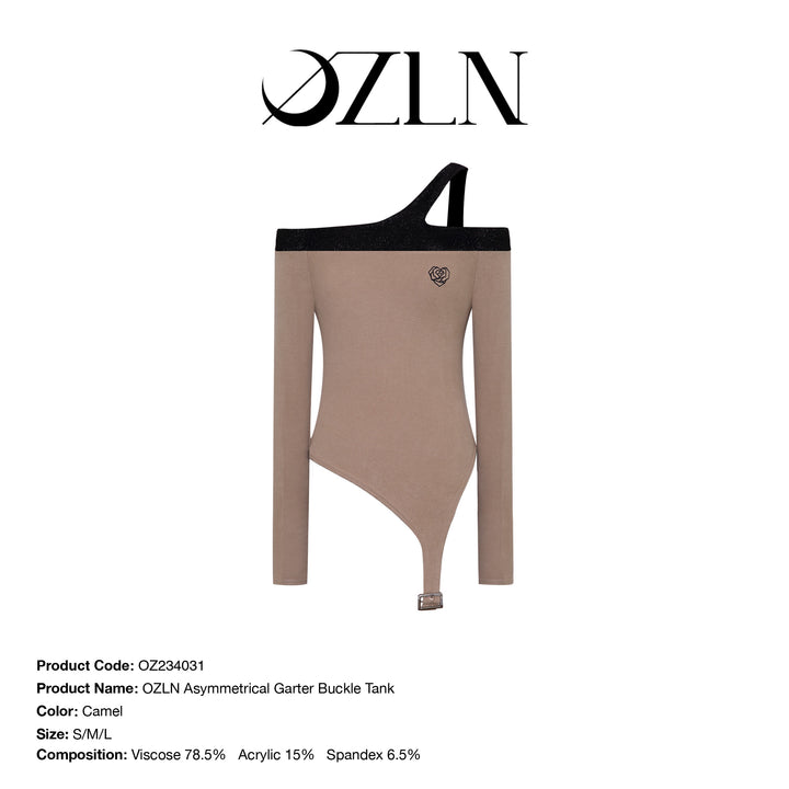 OZLANA SS2310 Asymmetrical Garter Buckle Tank Camel