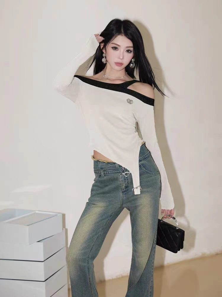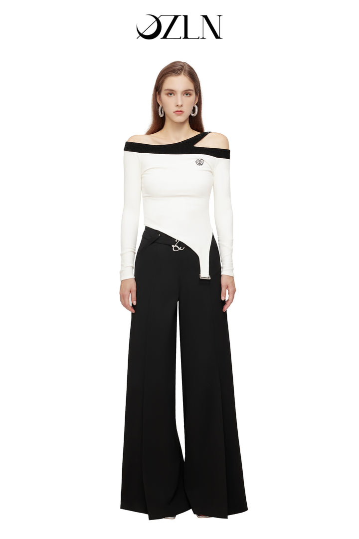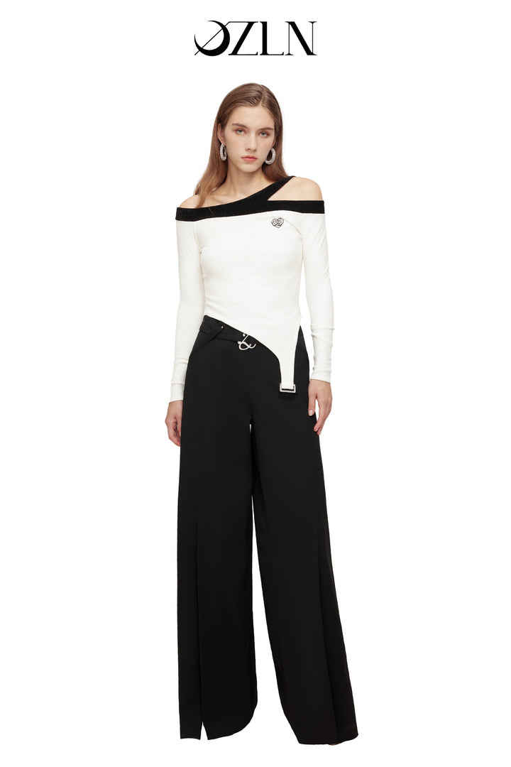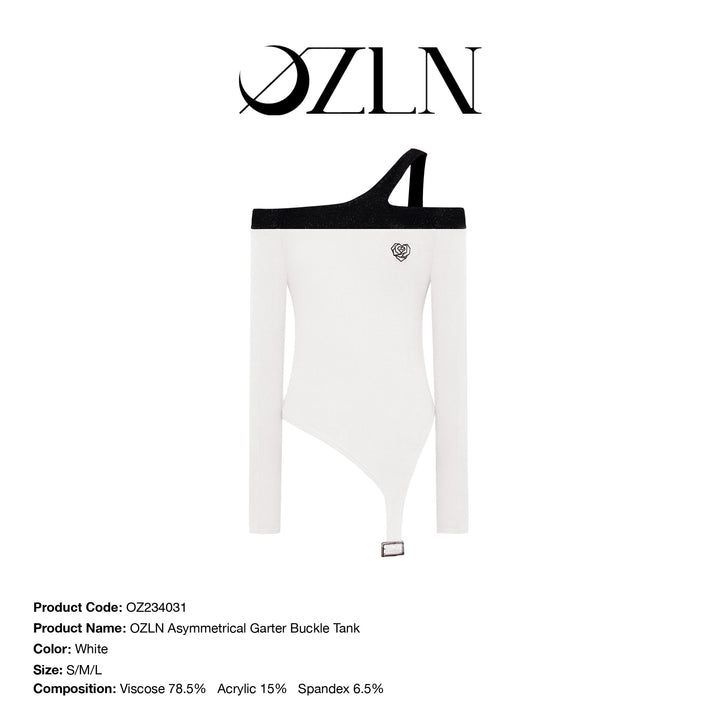 OZLANA SS2310 Asymmetrical Garter Buckle Tank White