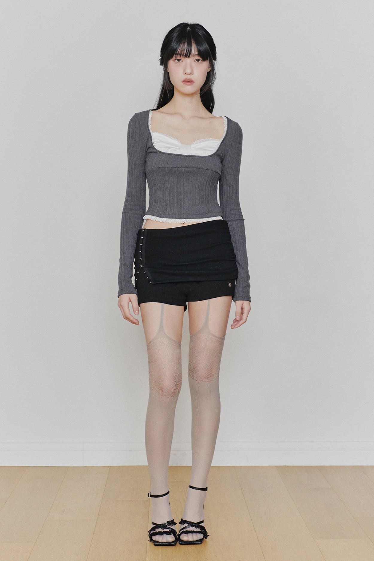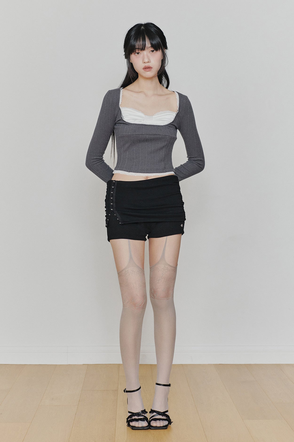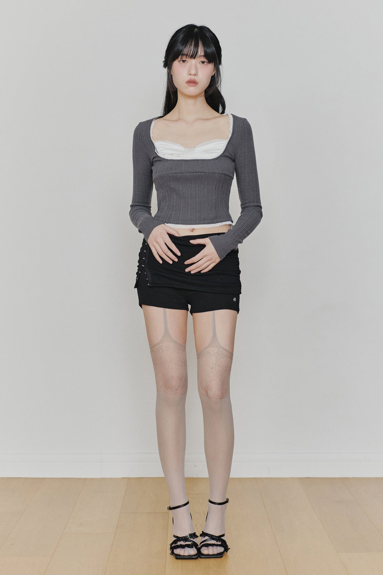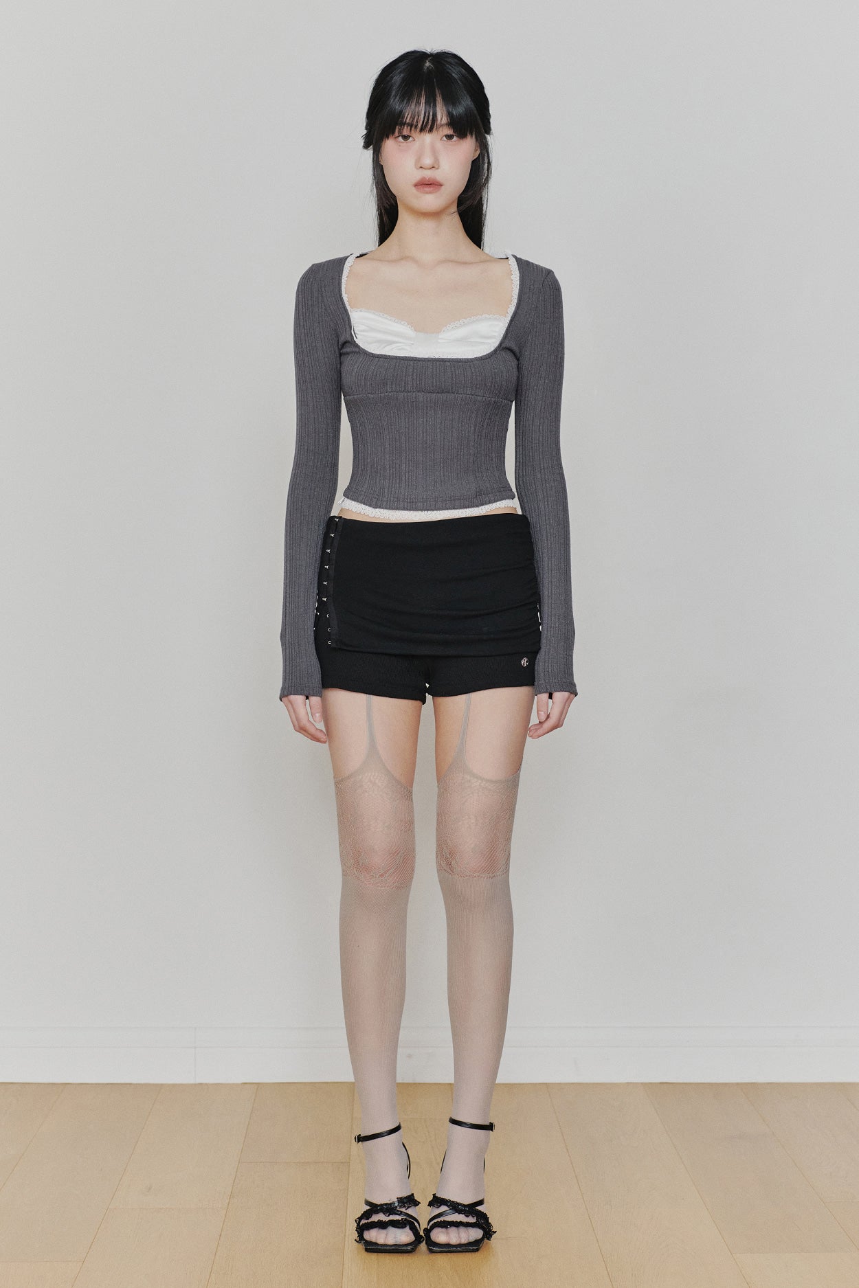 PAIN OR PLEASURE 2604 DAISY RIBBON TOP CHARCOAL