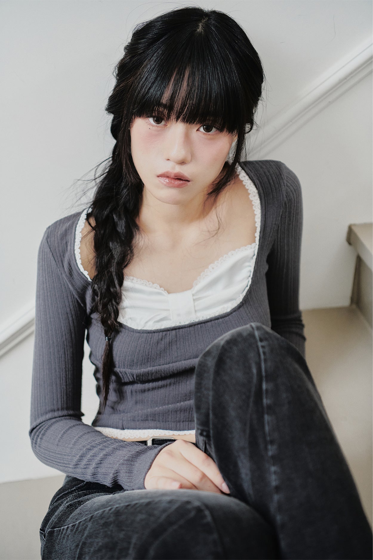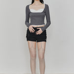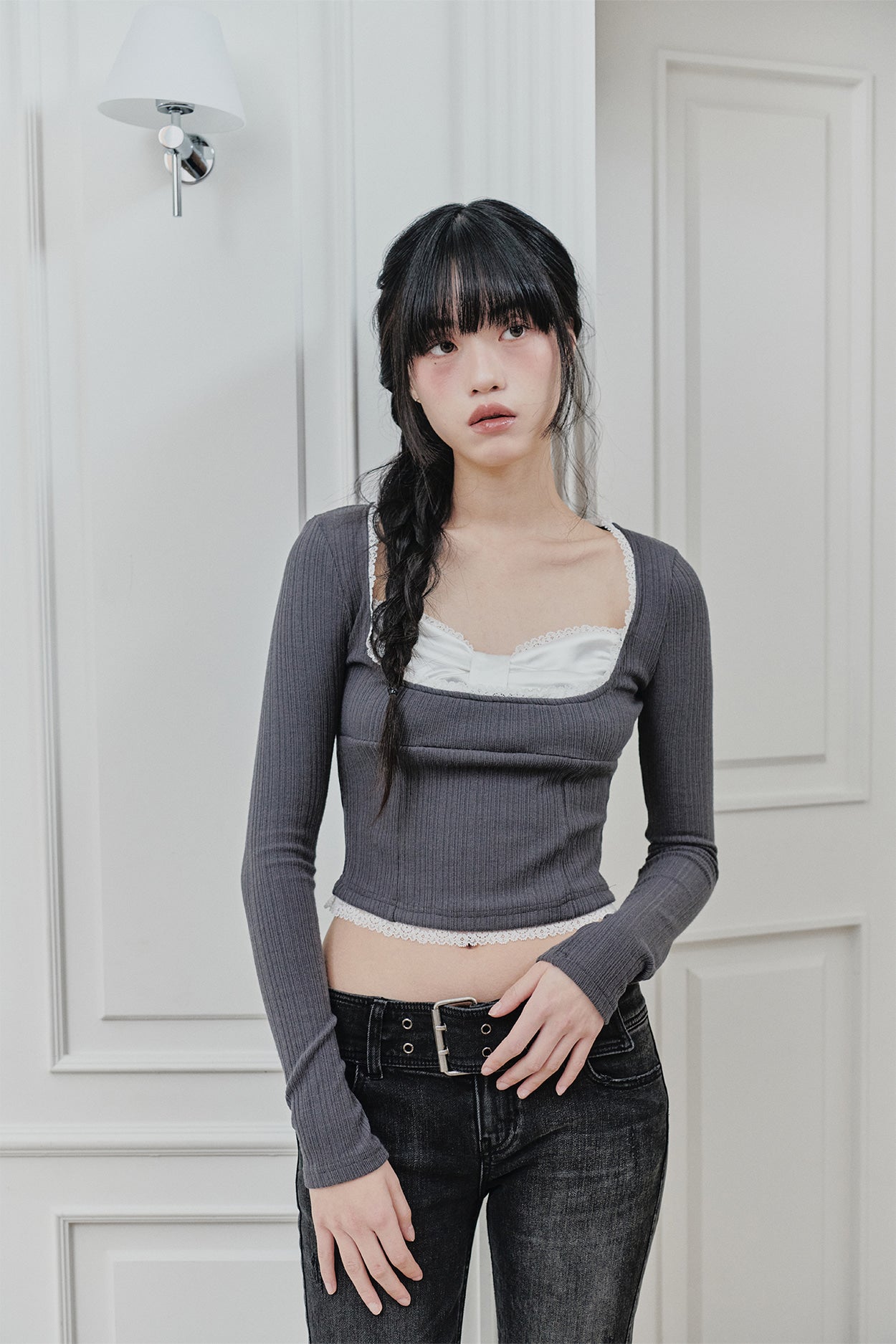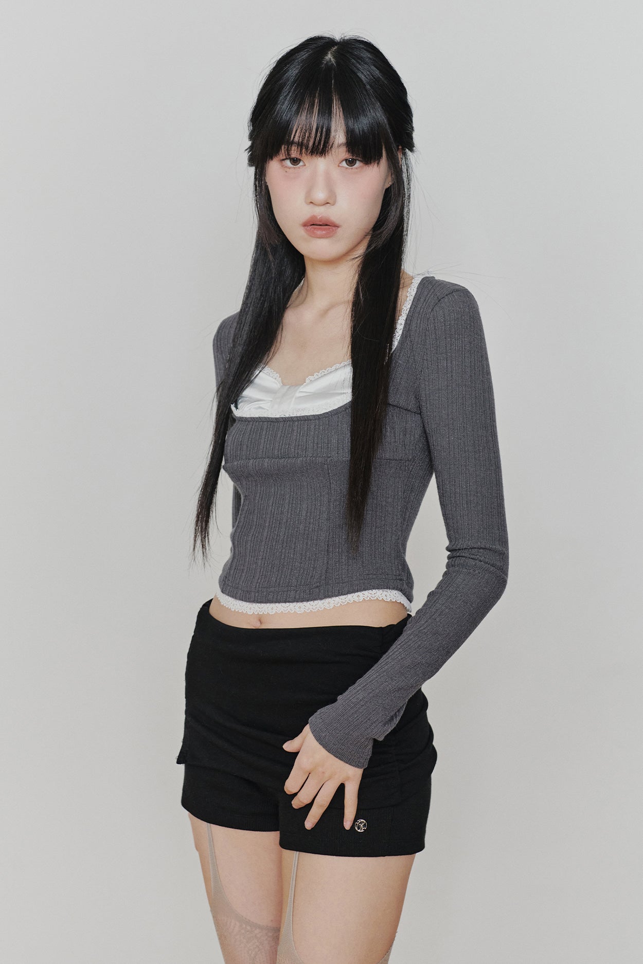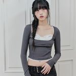 PAIN OR PLEASURE 2604 DAISY RIBBON TOP CHARCOAL