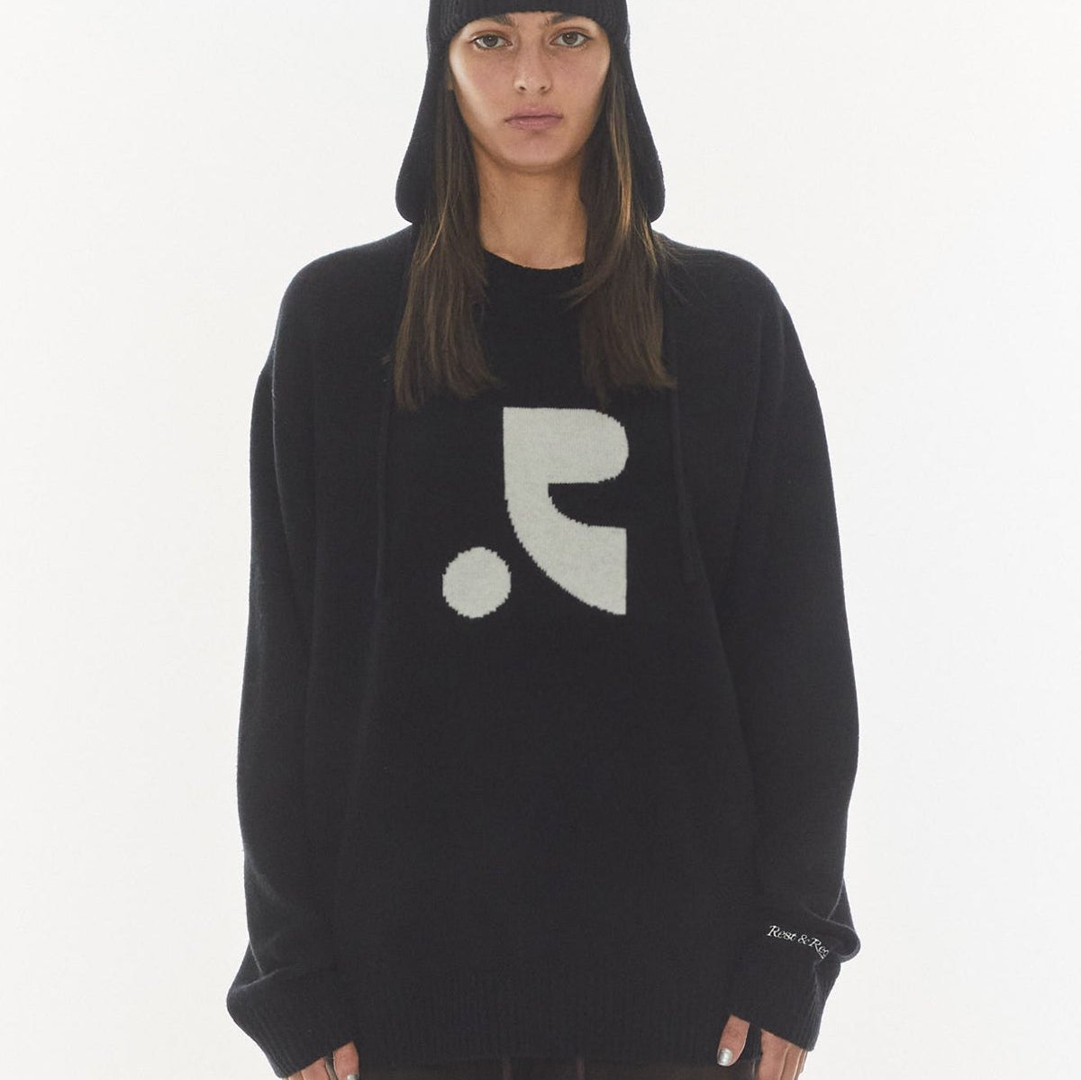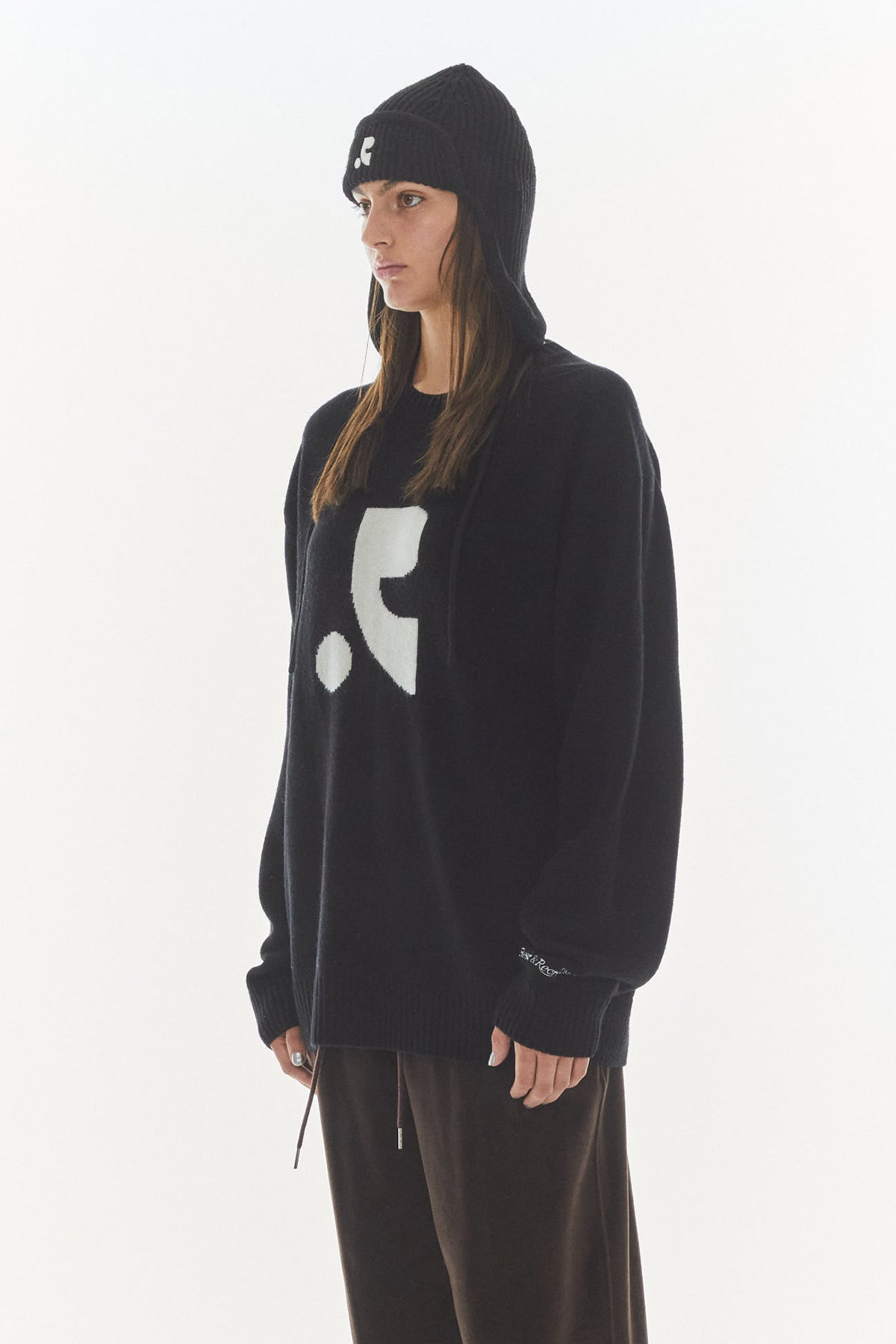 REST & RECREATION 2411 OVERSIZED JACQUARD KNIT TOP - BLACK