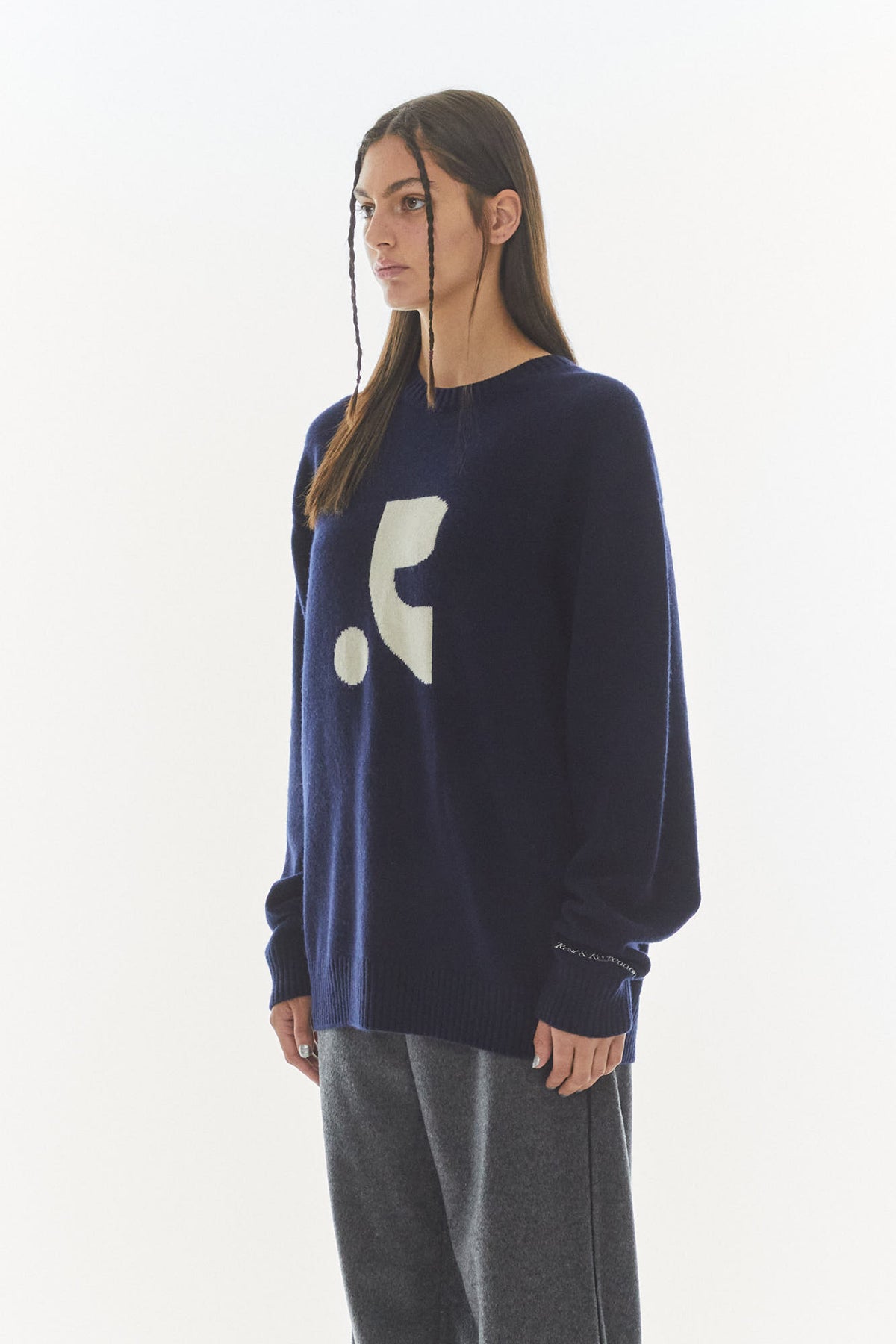 REST & RECREATION 2411 OVERSIZED JACQUARD KNIT TOP - NAVY