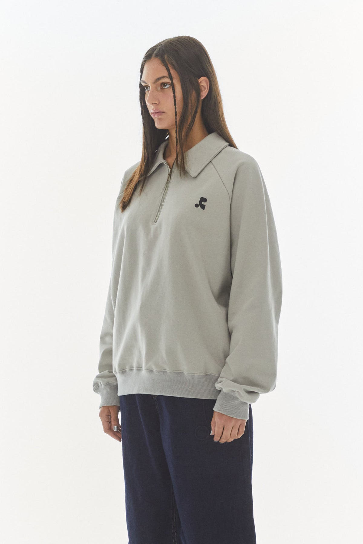REST & RECREATION 2412 COLLAR RAGLAN SWEATSHIRT - GREY