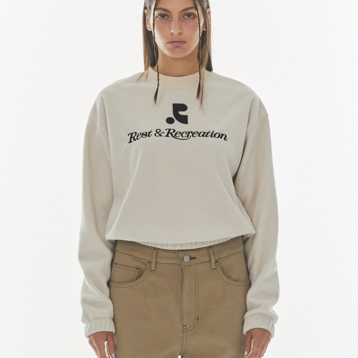 REST & RECREATION 2412 LOGO FLEECE SWEATSHIRT - IVORY
