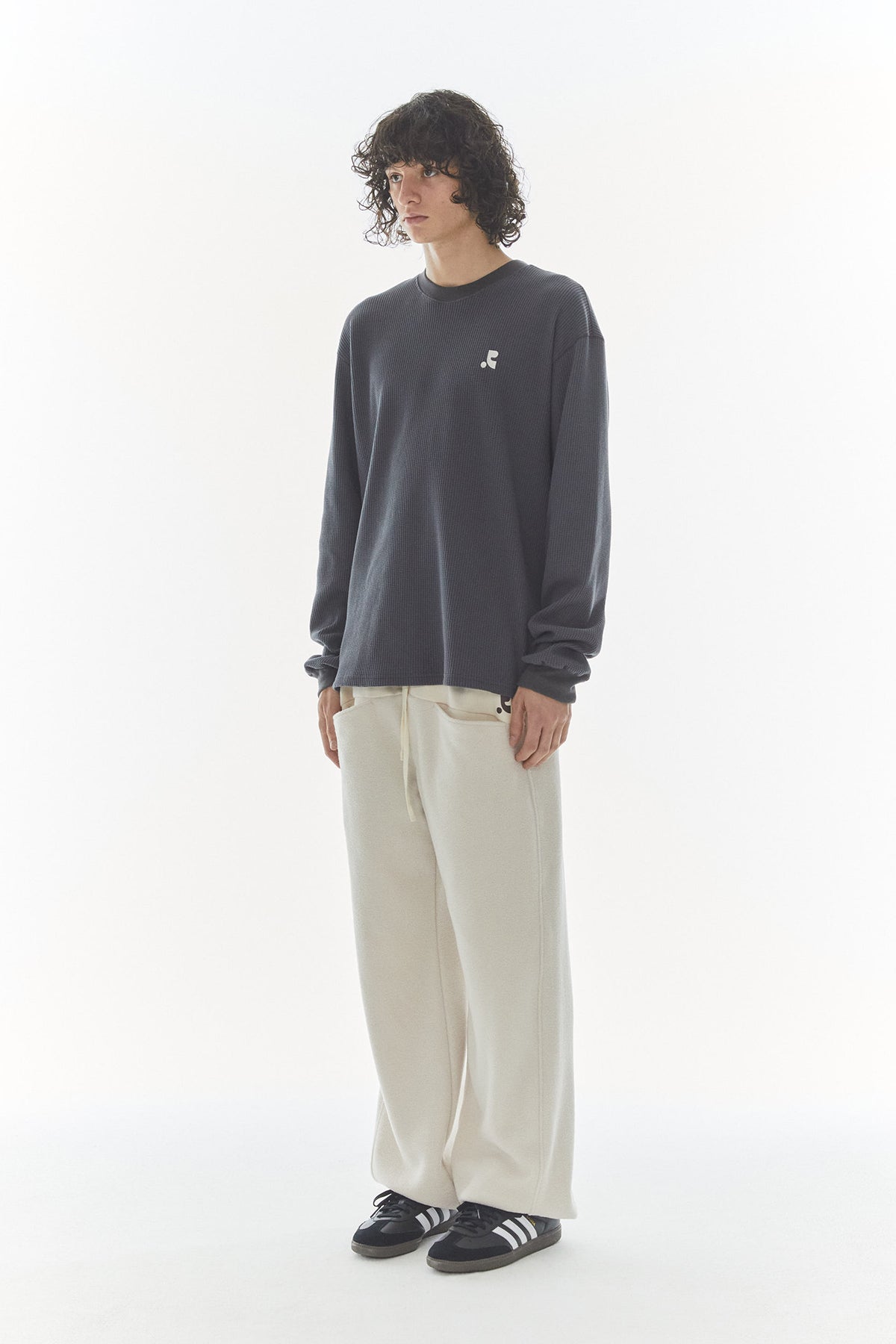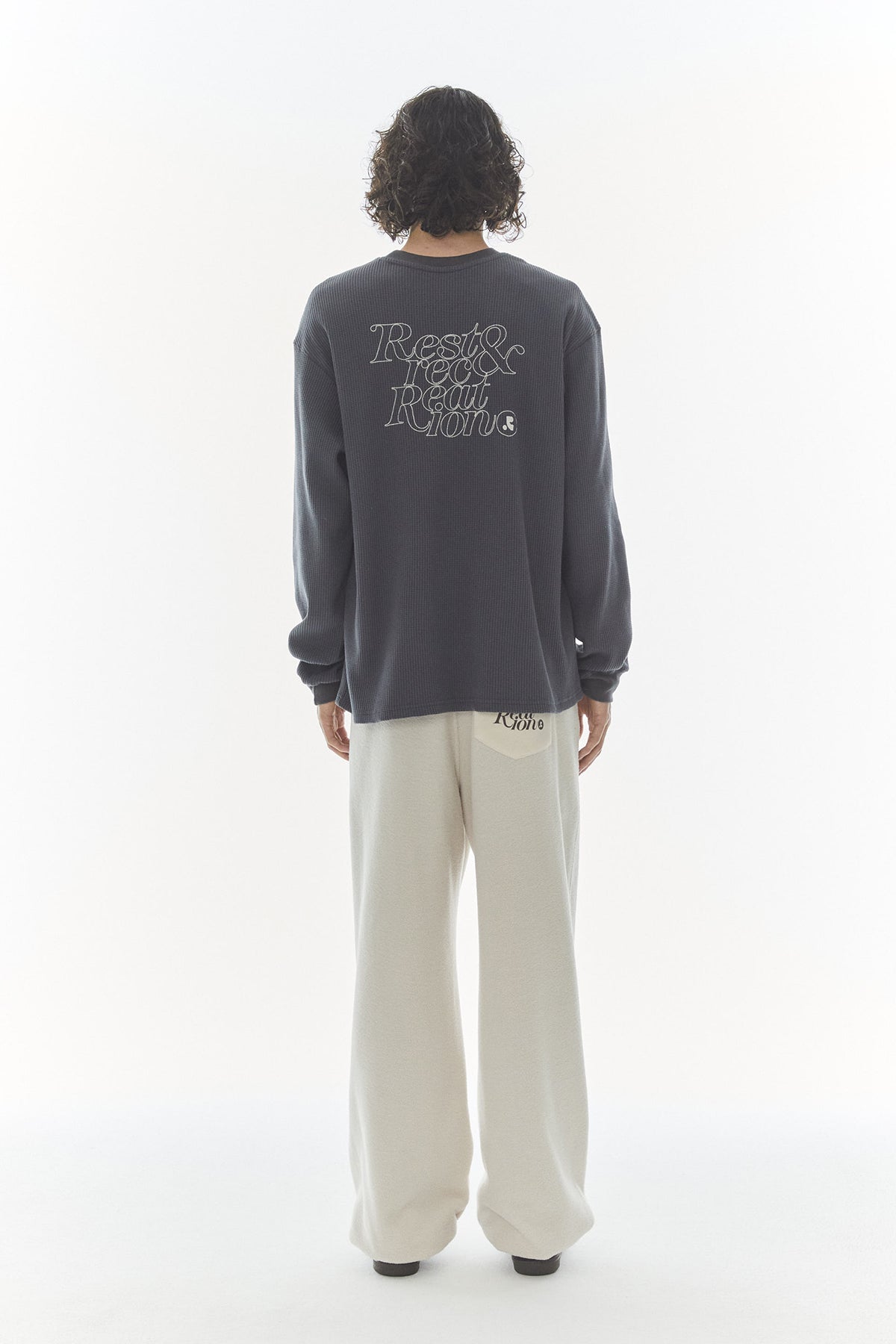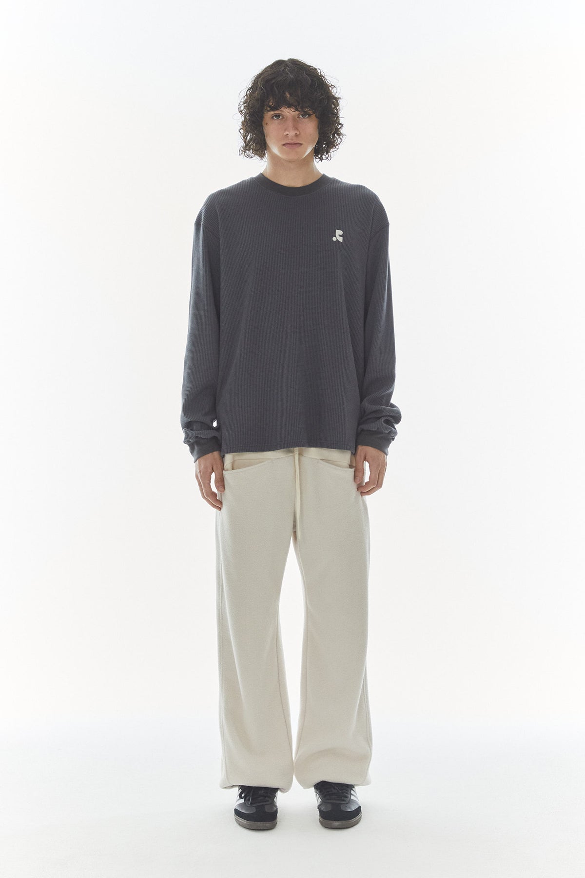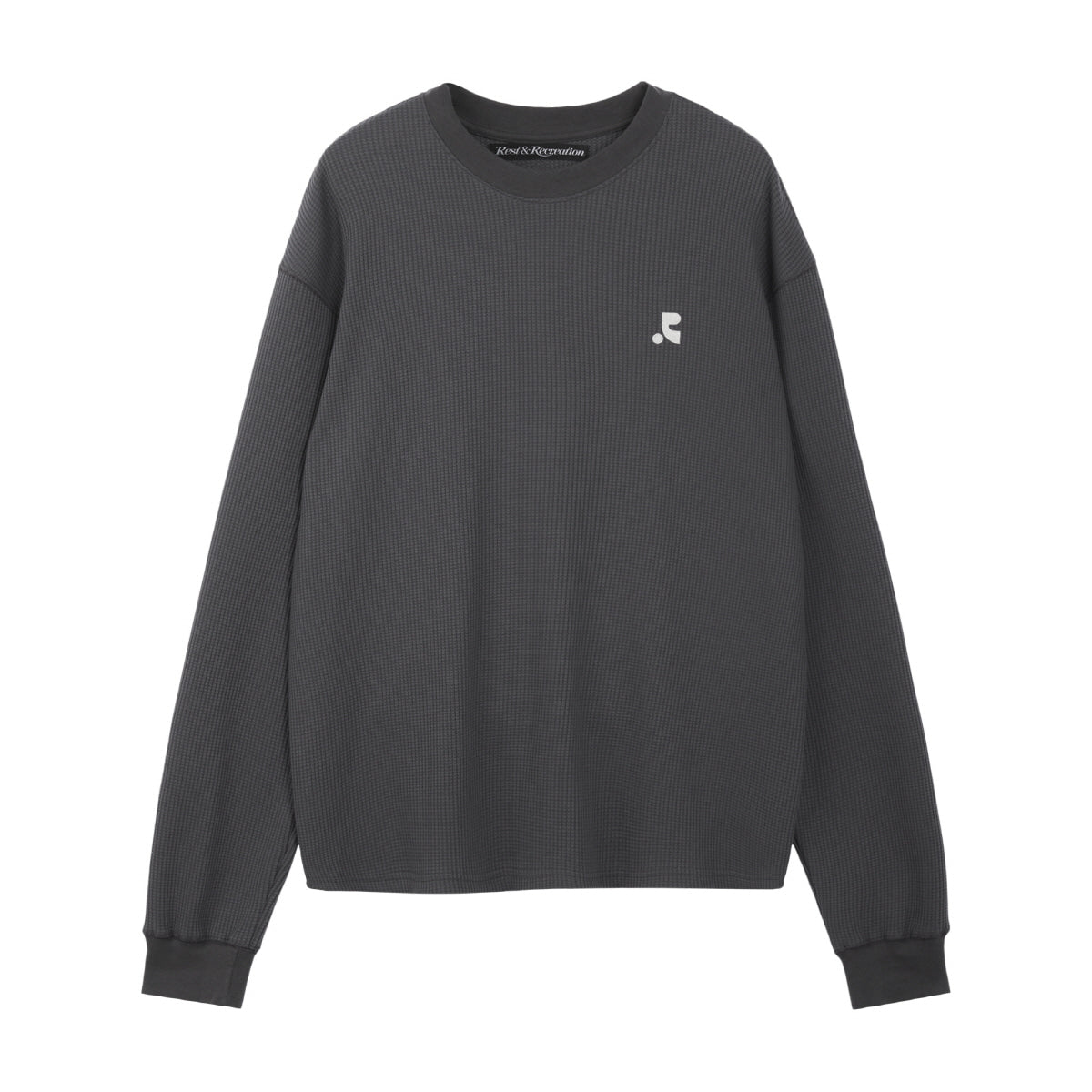 REST & RECREATION 2412 OVERSIZED WAFFLE CREWNECK T-SHIRT - CHARCOAL