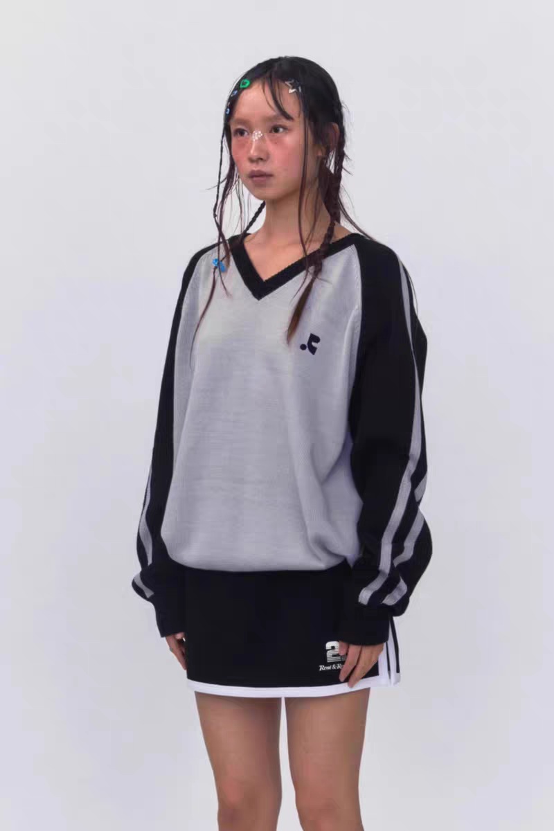 REST & RECREATION 2511 V-NECK SWEATER - GREY