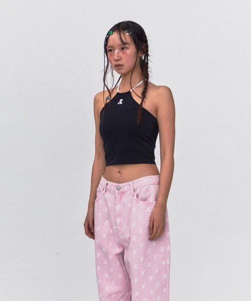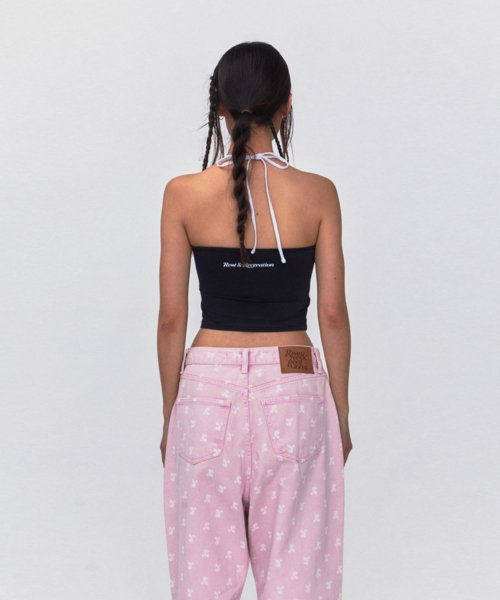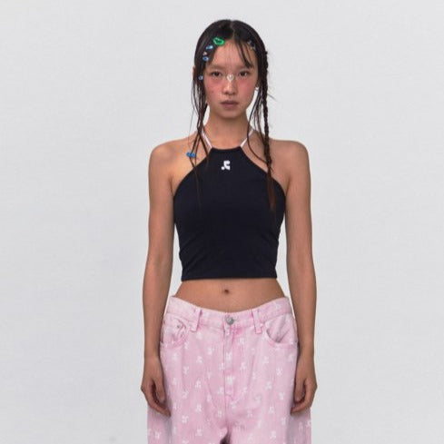 REST & RECREATION SS2404 HALTER NECK CROP TOP BLACK