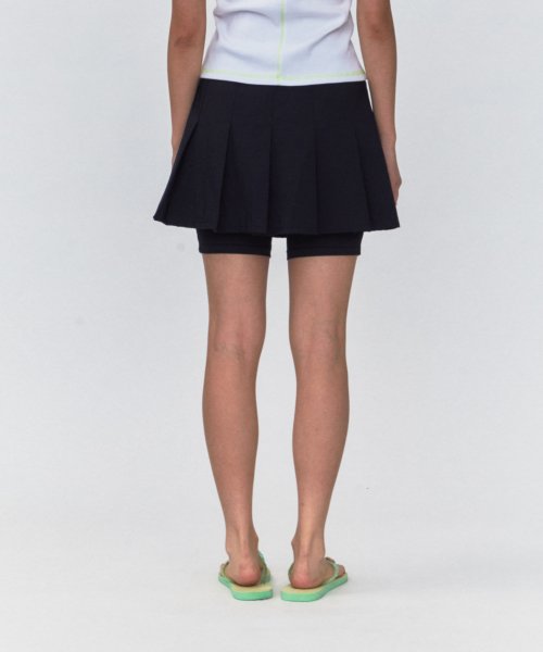 REST & RECREATION SS2404 LAYERED PLEATS SKIRT BLACK