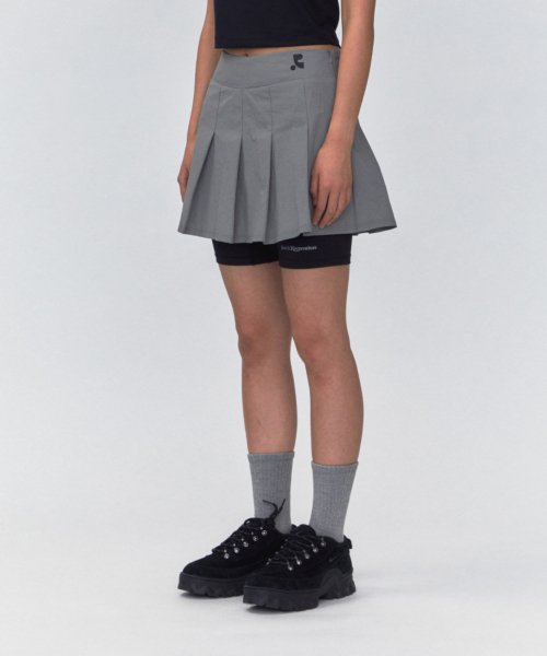 REST & RECREATION SS2404 LAYERED PLEATS SKIRT GREY