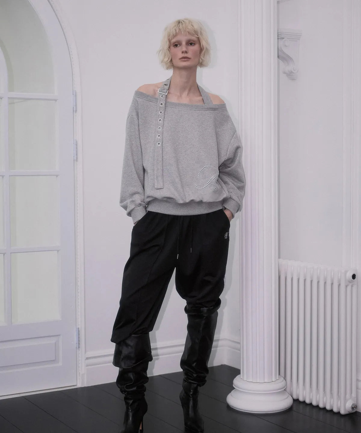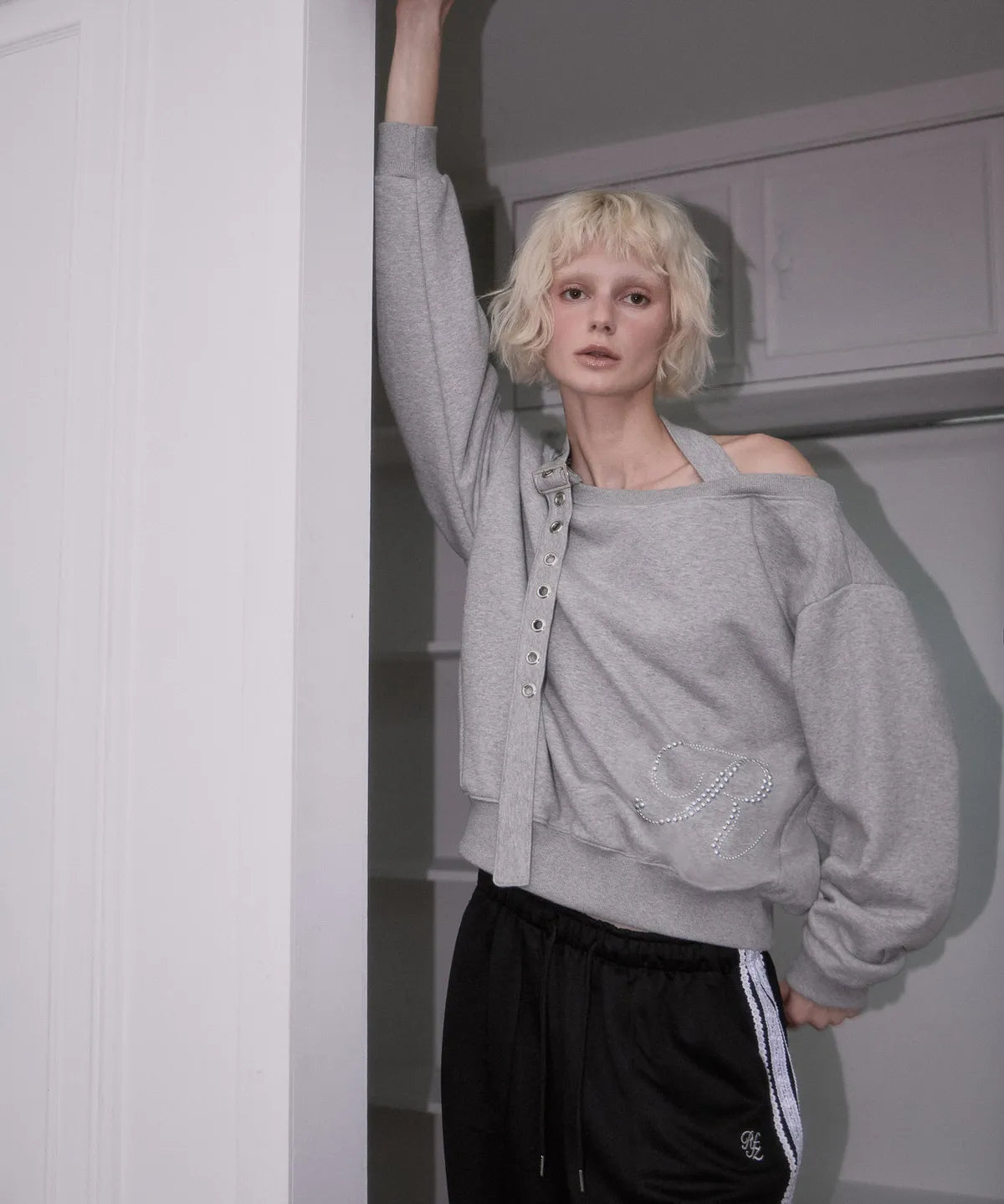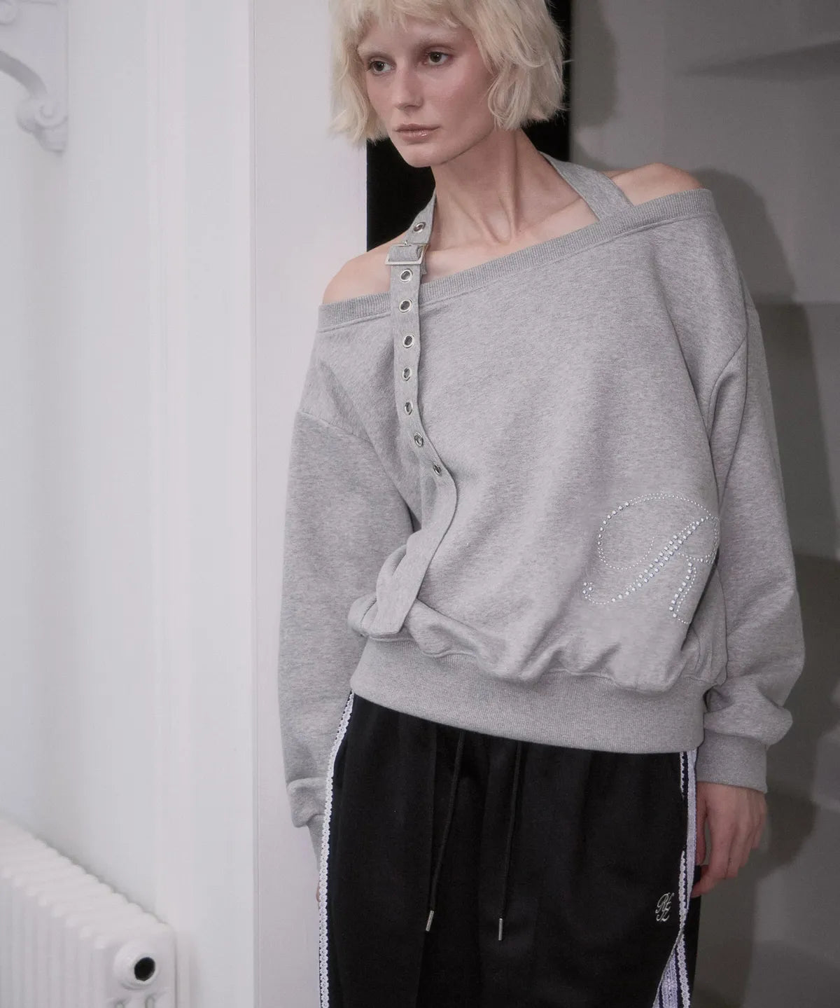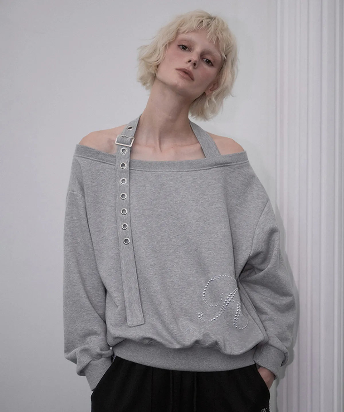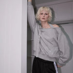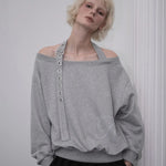 ROSE FRANTZ 2603 Eyelet Strap Open Sweatshirt Gray