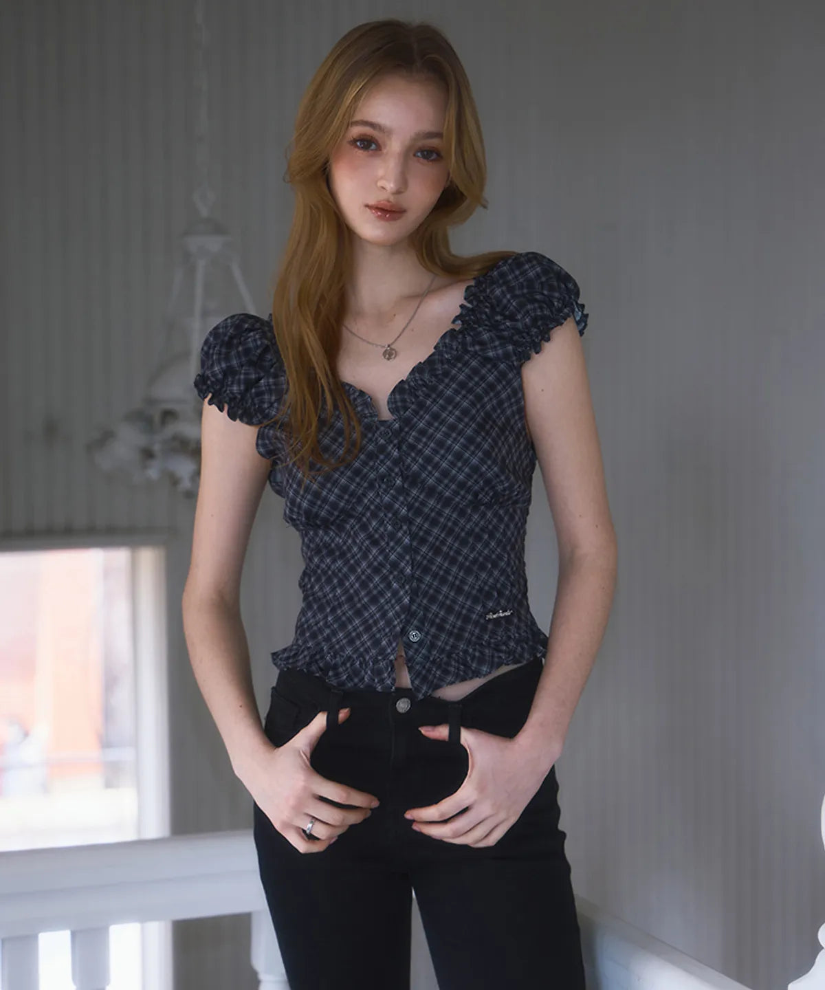 ROSE FRANTZ 2603 Frill Shirring Sleeveless Black