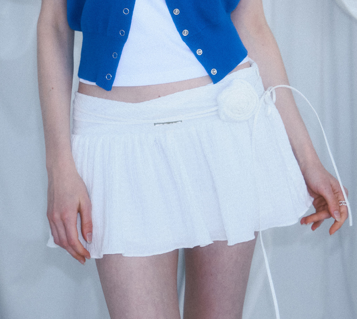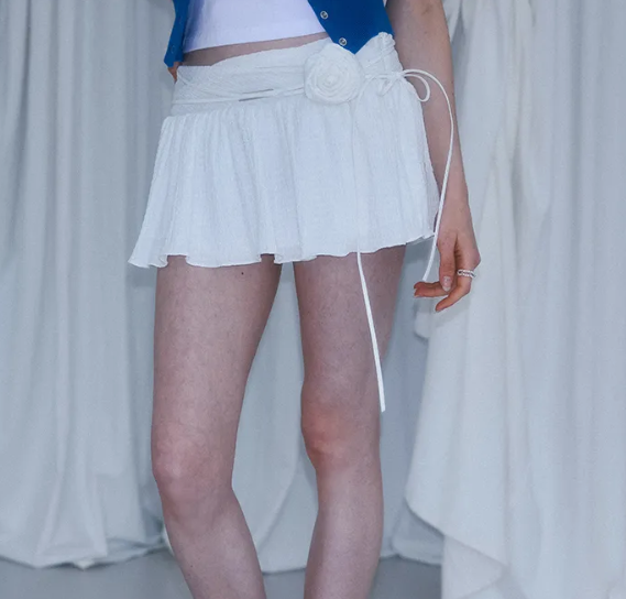 ROSE FRANTZ 2604 Rose Corsage Mini Skirt White