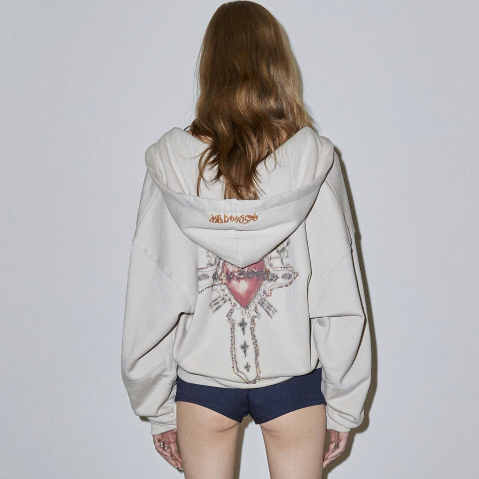 SCULPTOR 2511 Beaded Saint Hoodie Zip-Up Dirty White