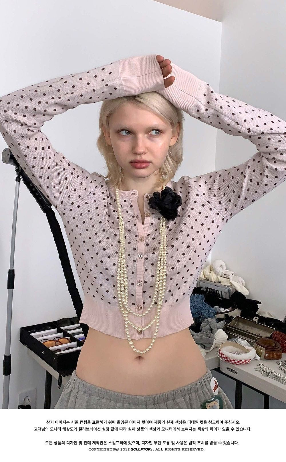 SCULPTOR 2511 Polka Dot Cardigan Baby Pink/Brown