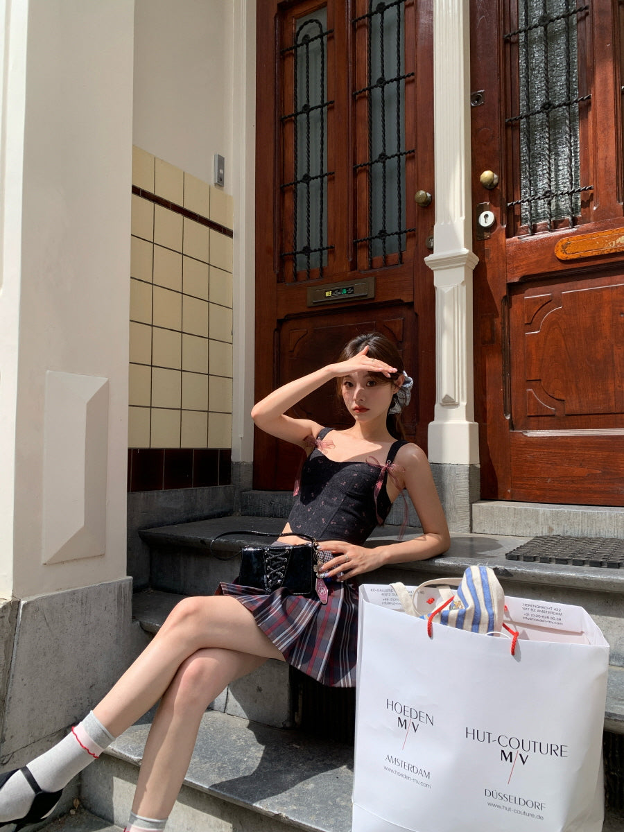 SEOOOCOOKIE 2601 Momo Charcoal Ribbon Top