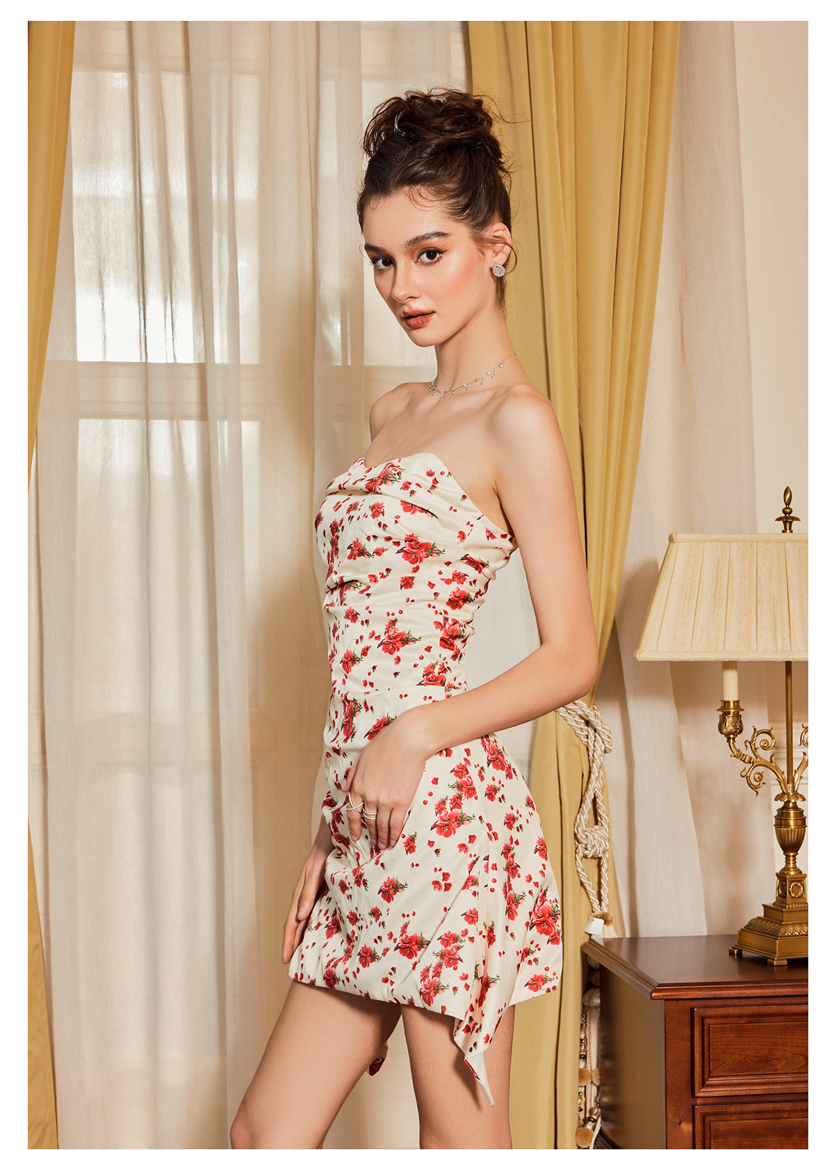 SHEER LUCK 2405 石榴花法式抹胸碎花连衣裙