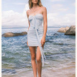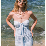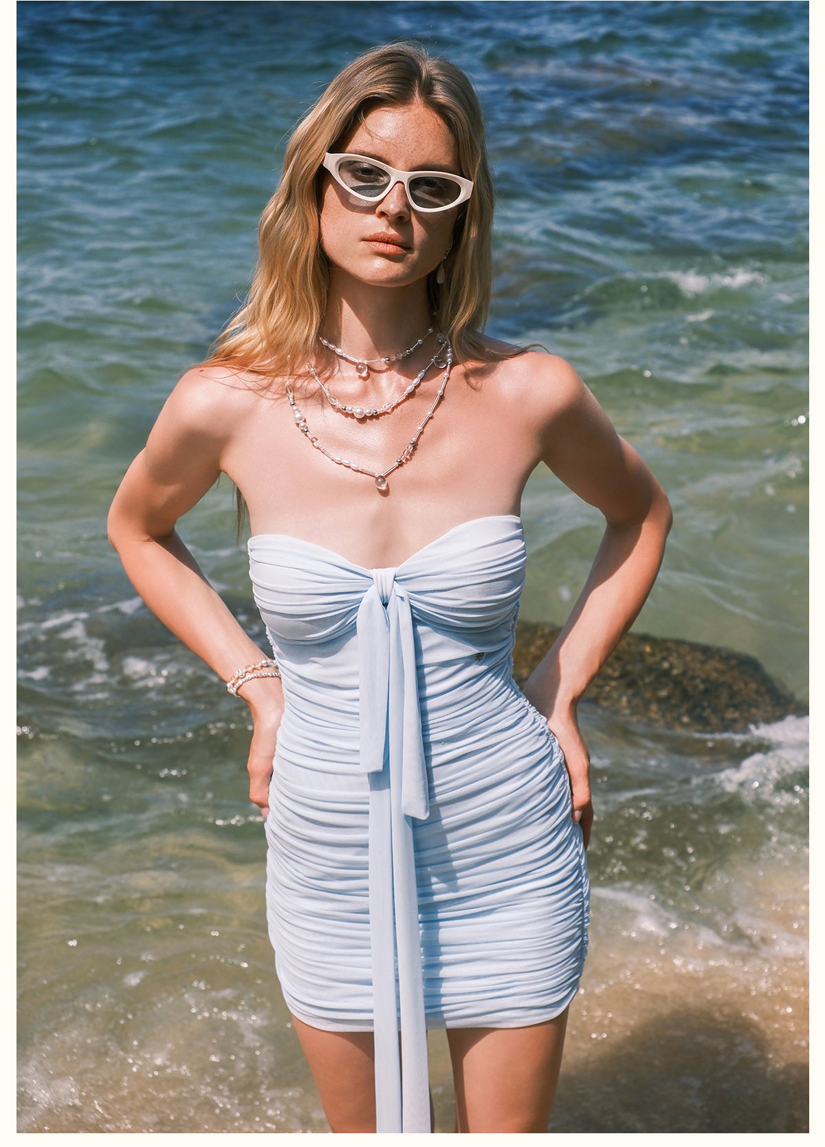 SHEER LUCK 2509 可调节飘带蝴蝶结挂脖抽褶包臀裙