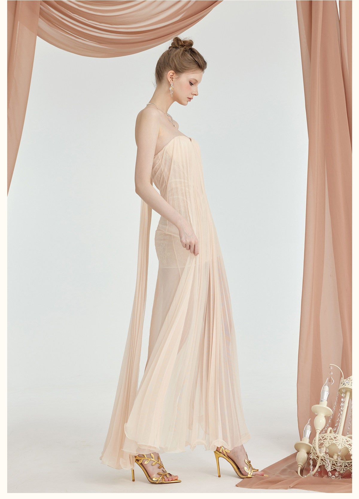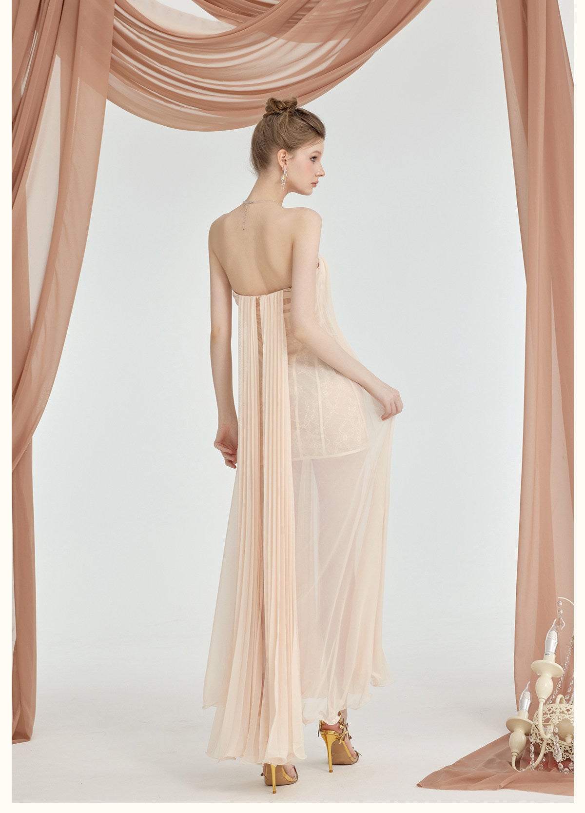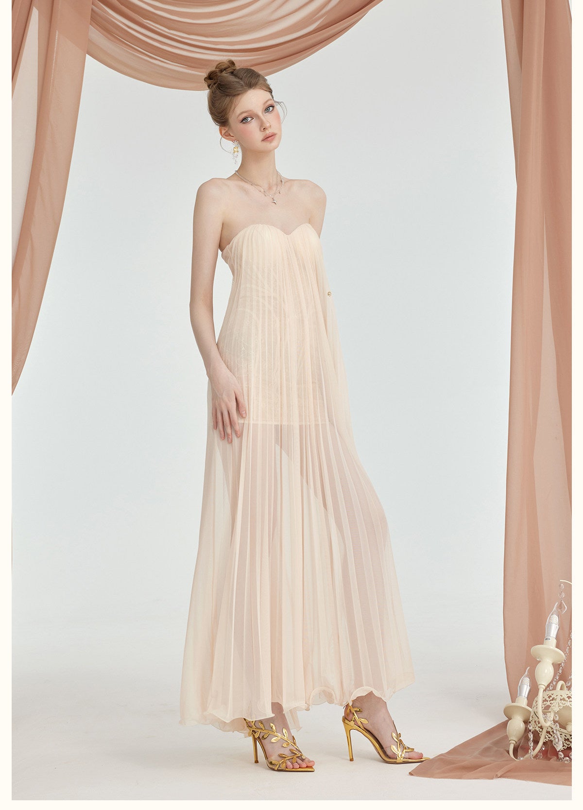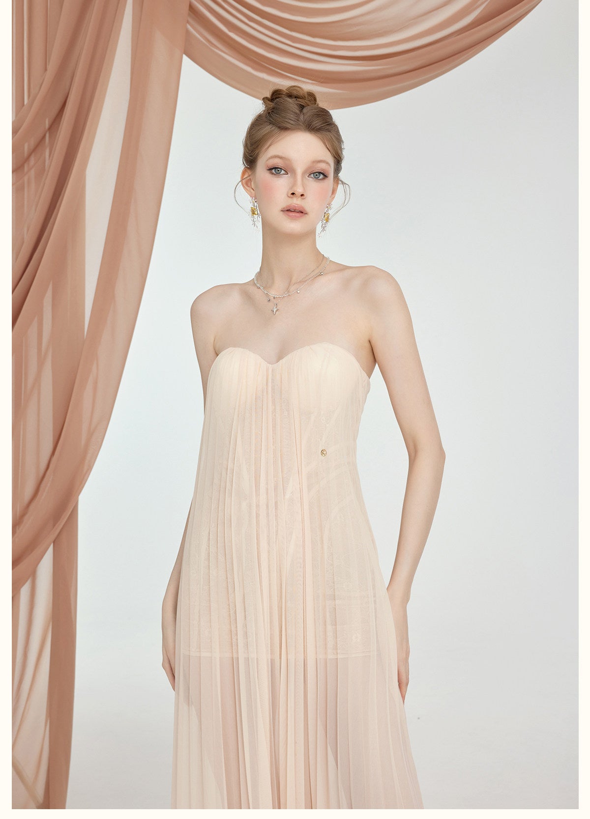 SHEER LUCK 2601 蕾丝抹胸连衣裙 米杏