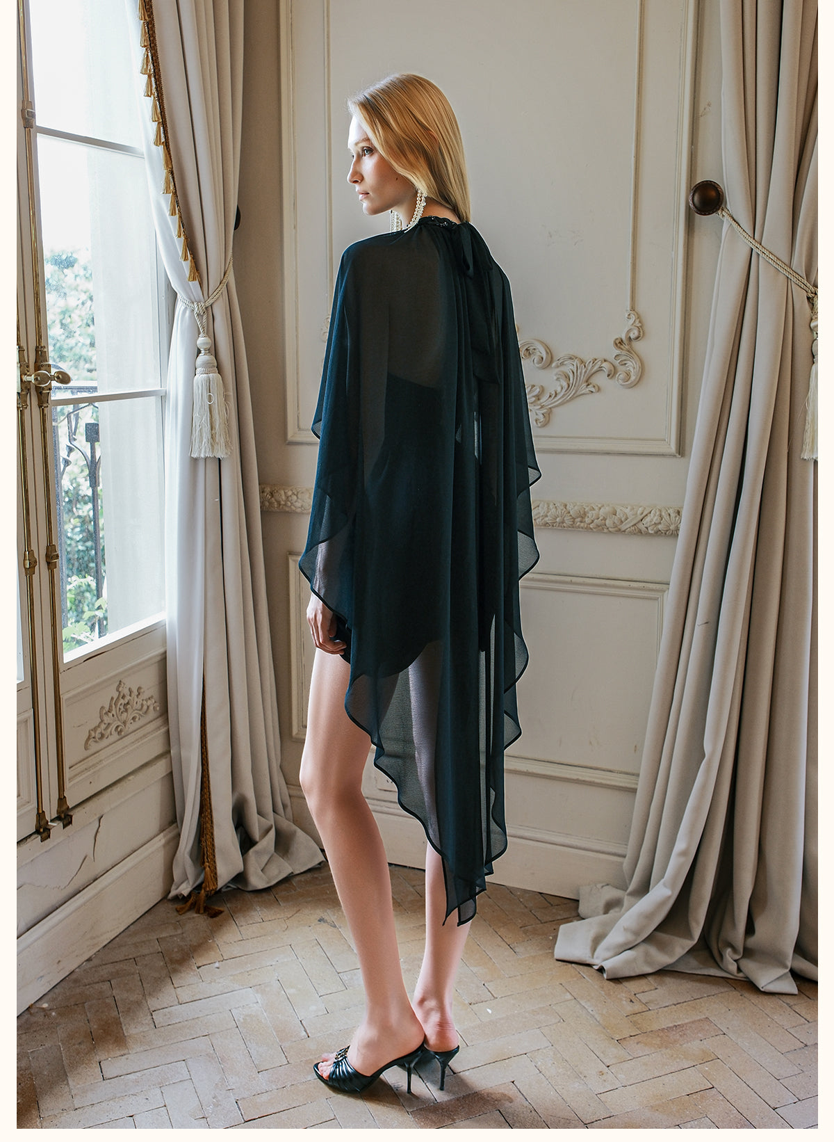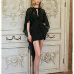 SHEER LUCK 2512 Amara编织挂脖披肩鱼骨连衣裙 黑