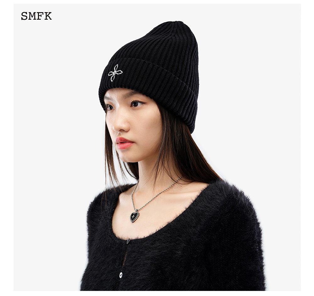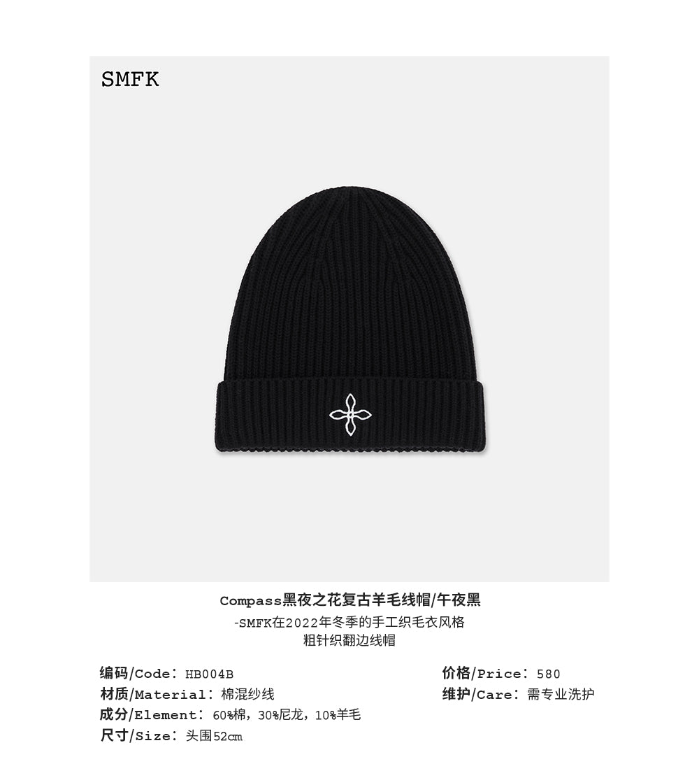 SMFK 黑暗之花复古羊毛线帽 唐艺昕同款 黑