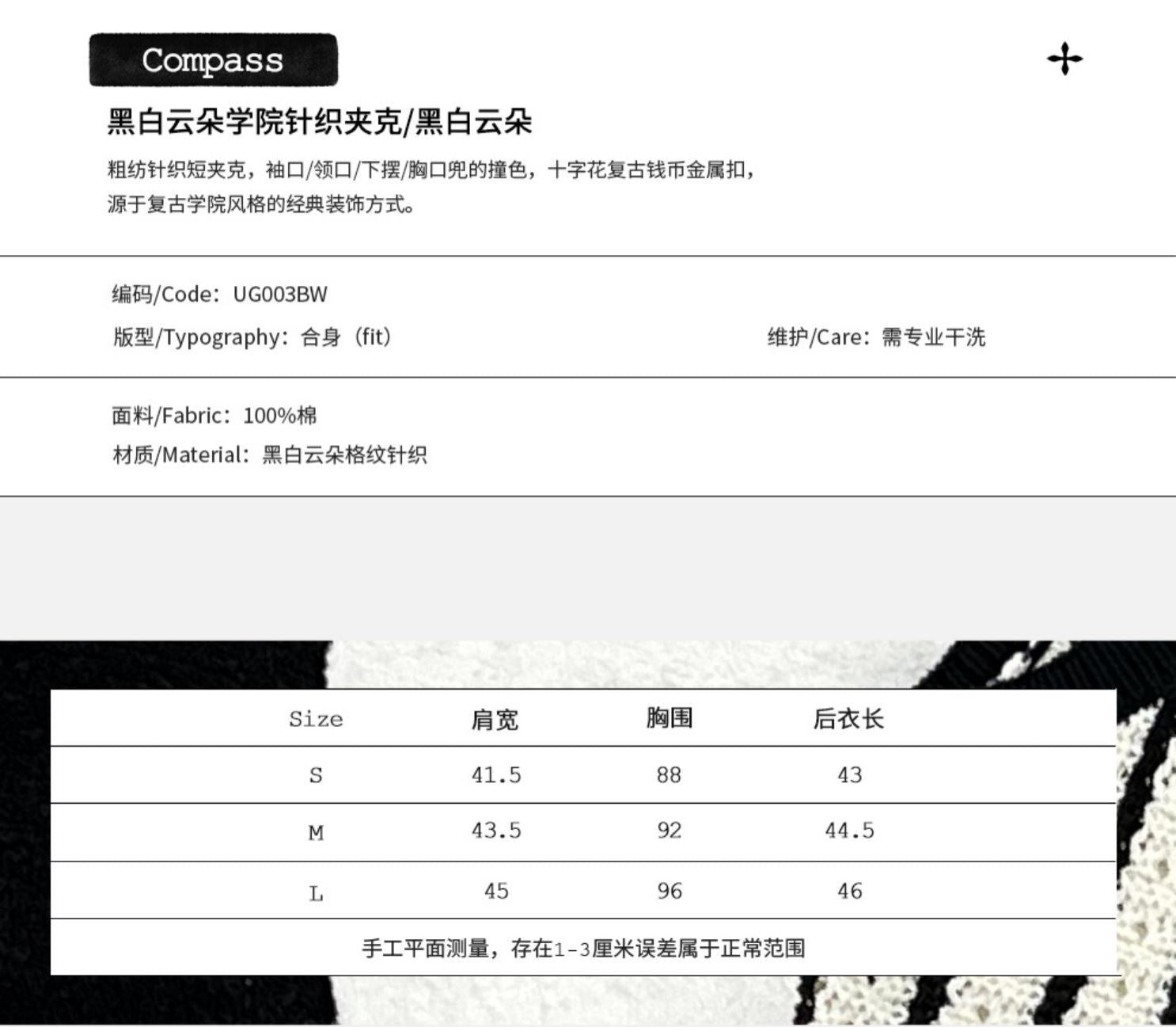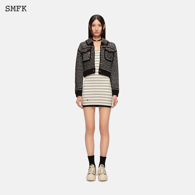 SMFK 黑白云朵学院风针织夹克