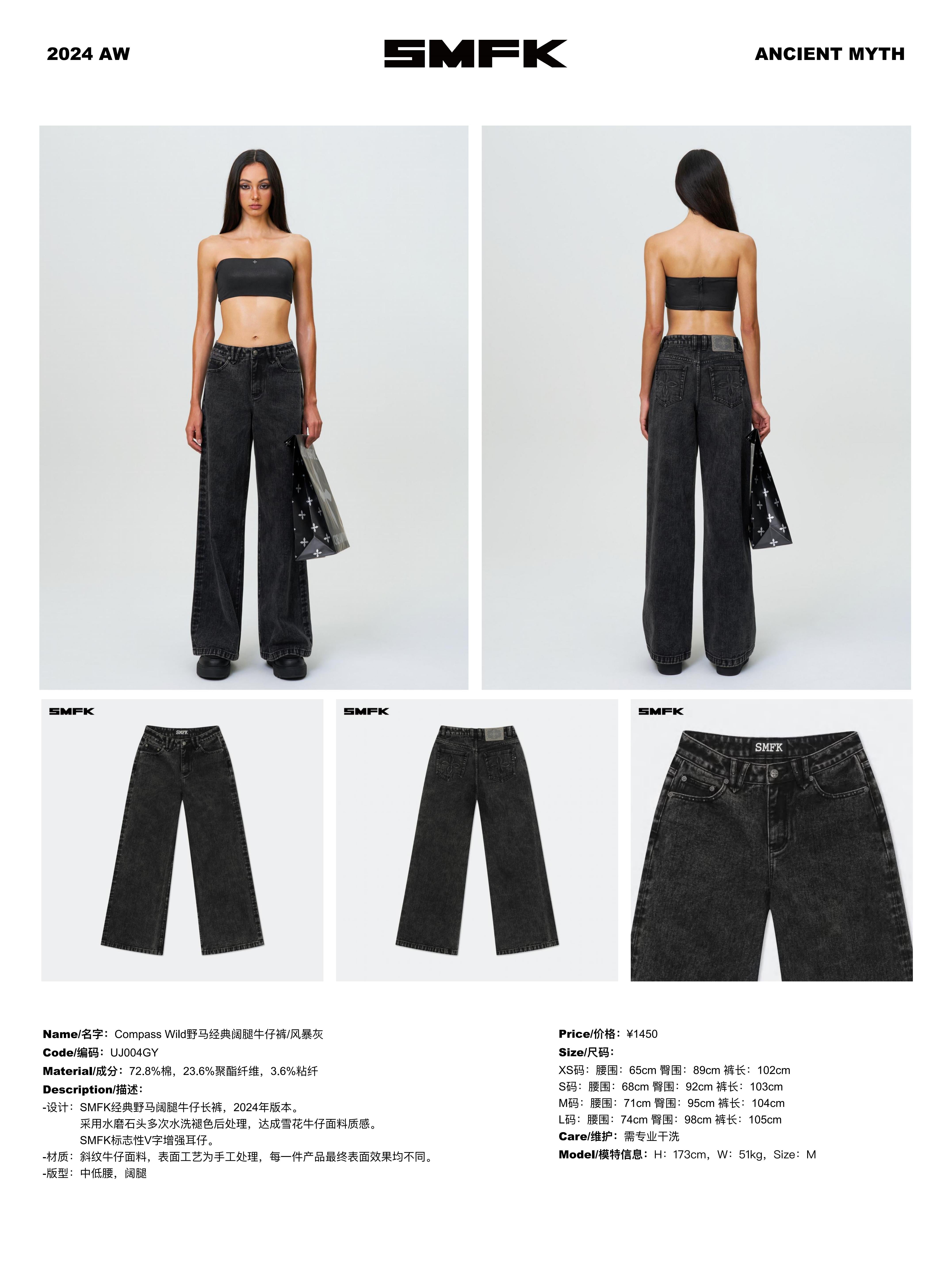 SMFK 2408 野马经典阔腿牛仔裤 风暴灰