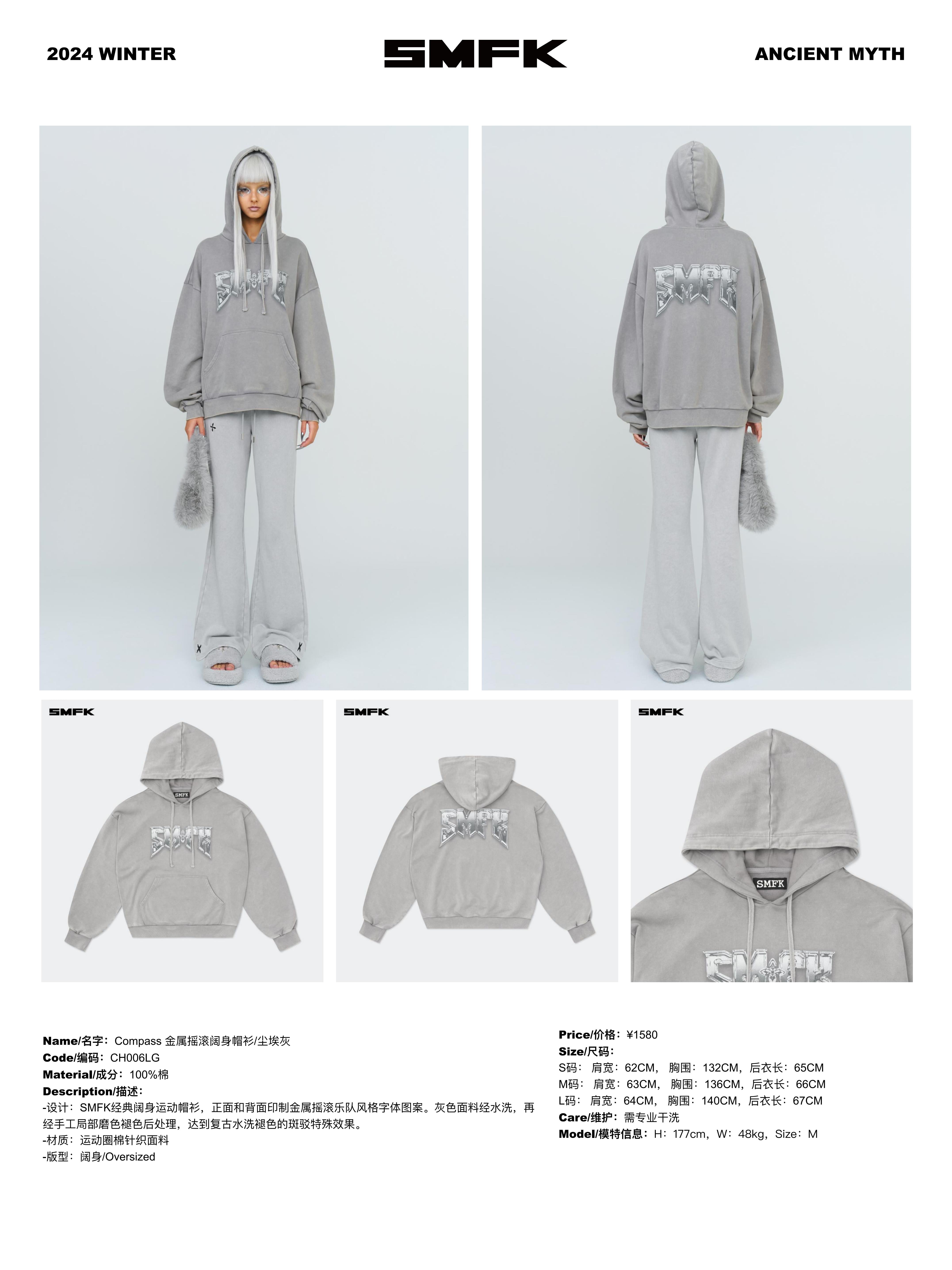 SMFK 2410 未来基因阔身运动帽衫/尘埃灰