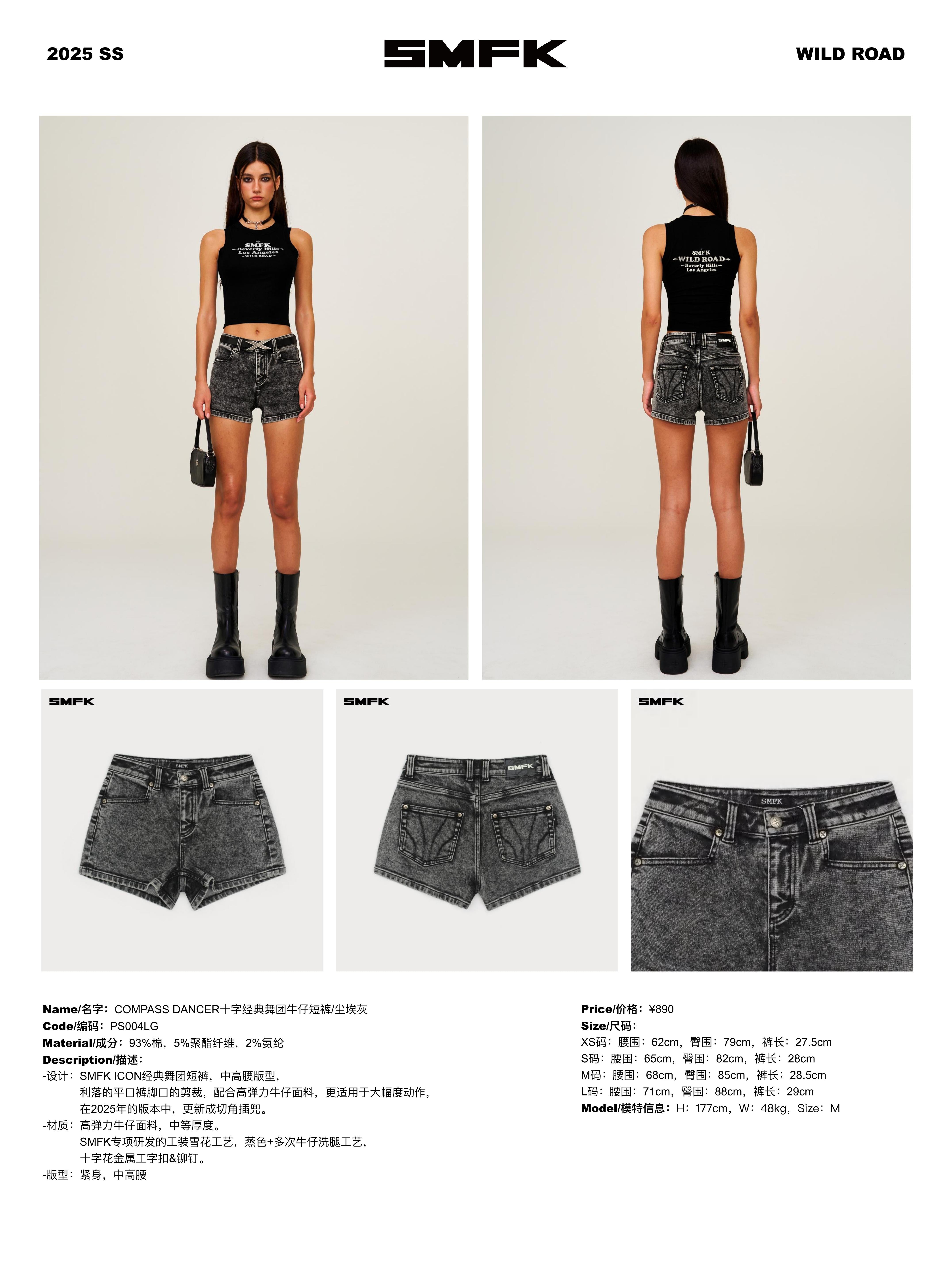 SMFK 2503 十字经典舞团牛仔短裤/尘埃灰
