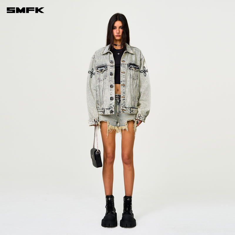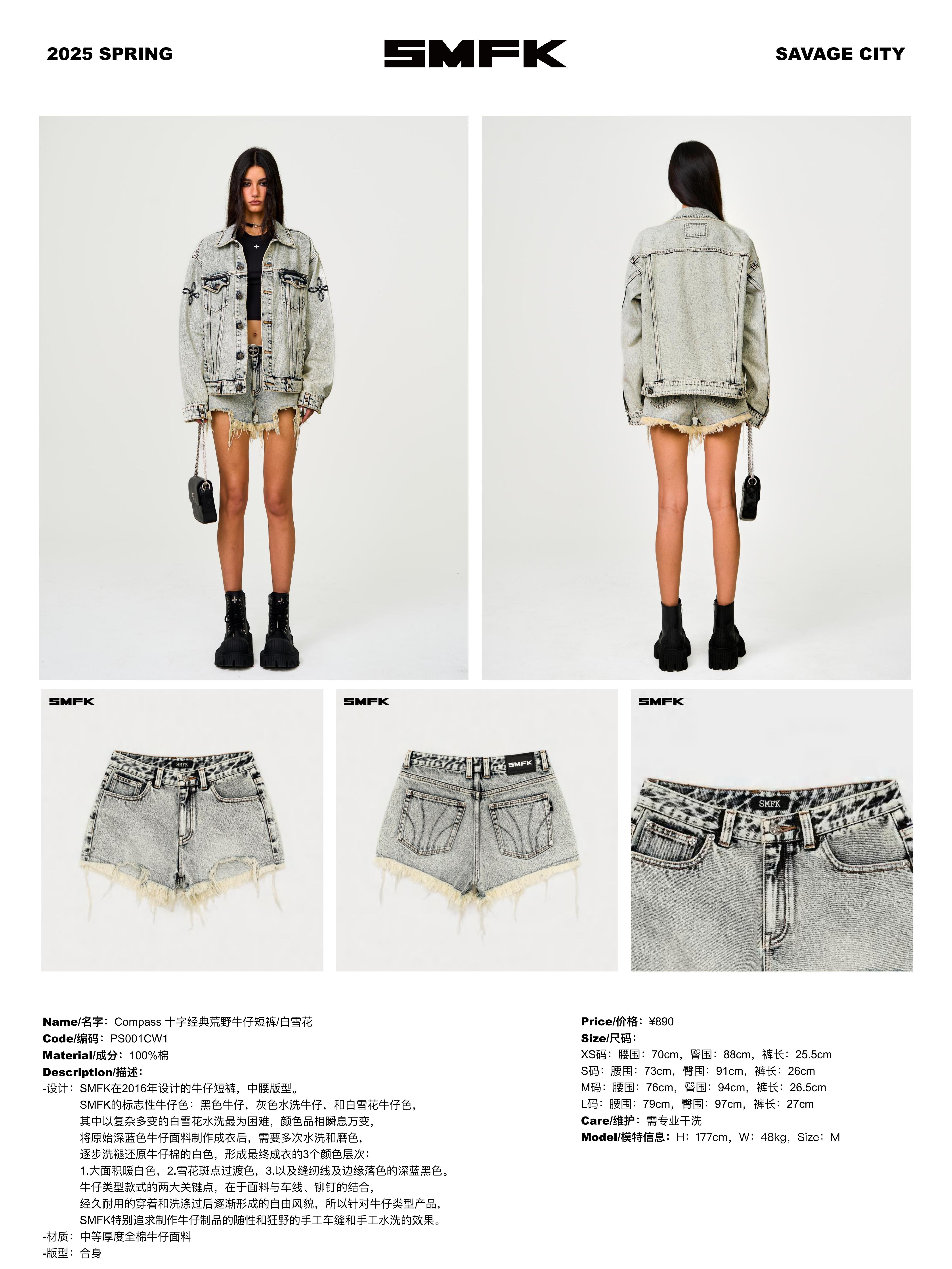 SMFK 2503 十字经典荒野牛仔短裤/白雪花