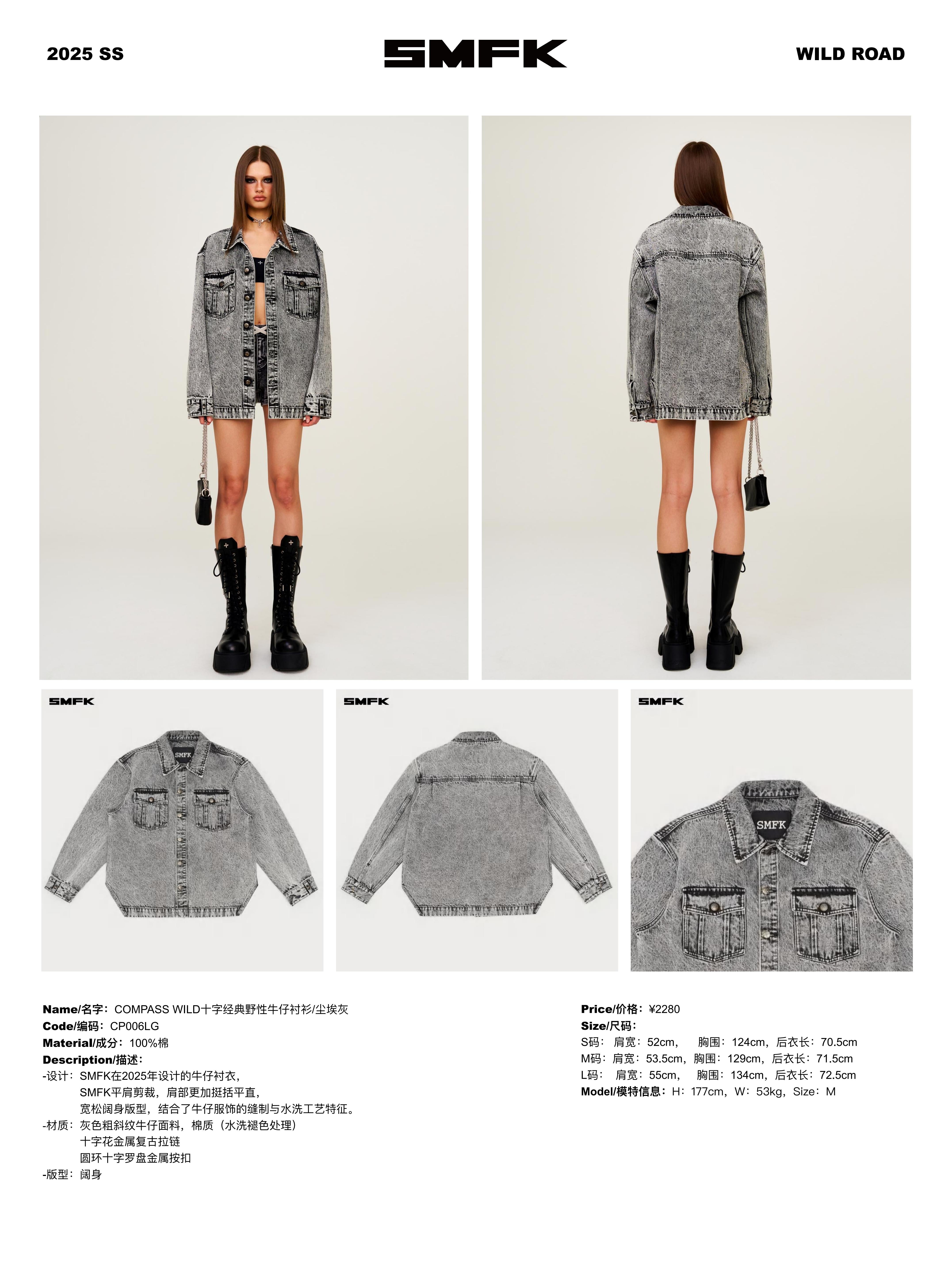 SMFK 2503 十字经典野性牛仔衬衫/尘埃灰