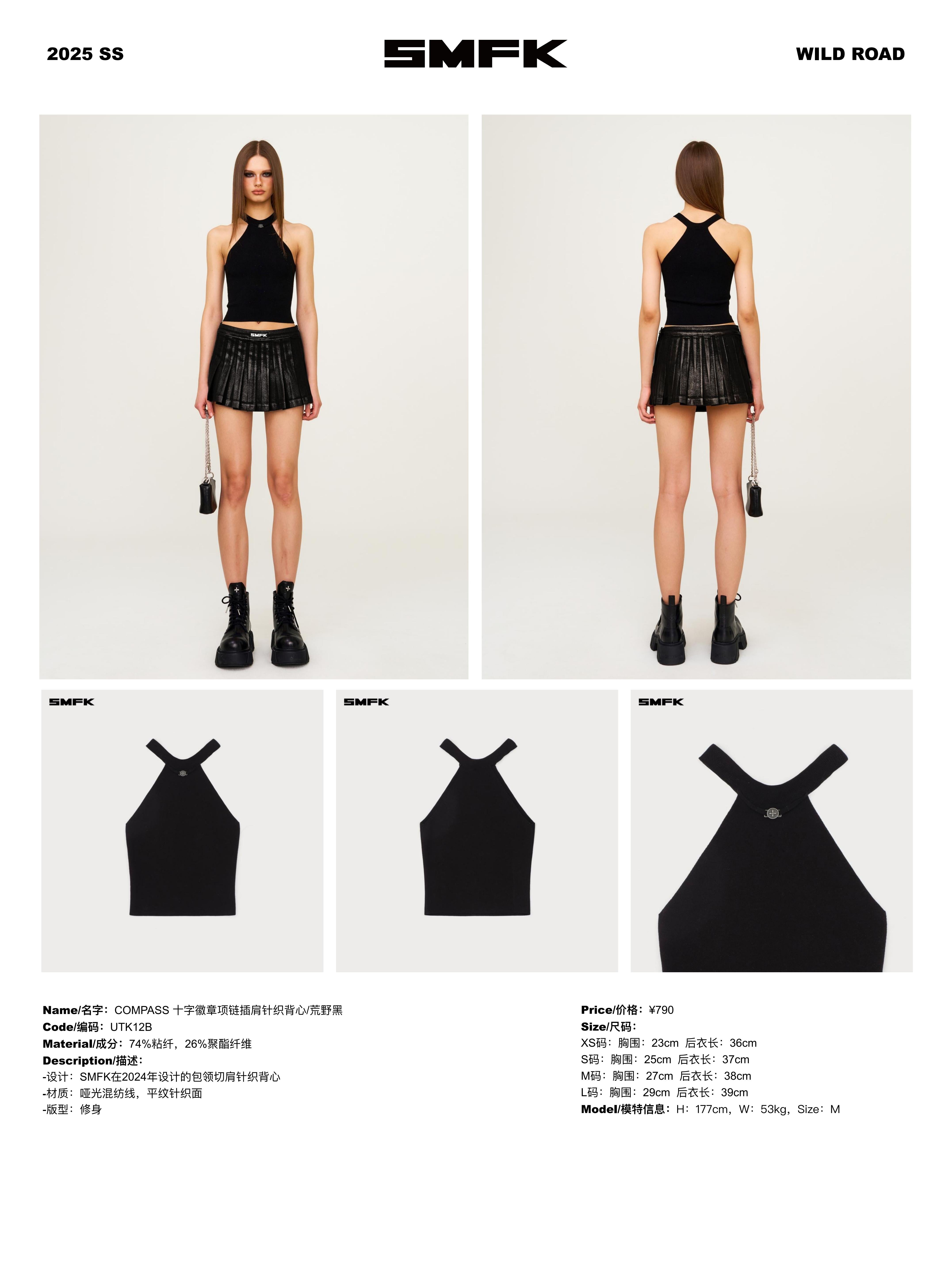 SMFK 2504 十字徽章项链插肩针织背心/荒野黑