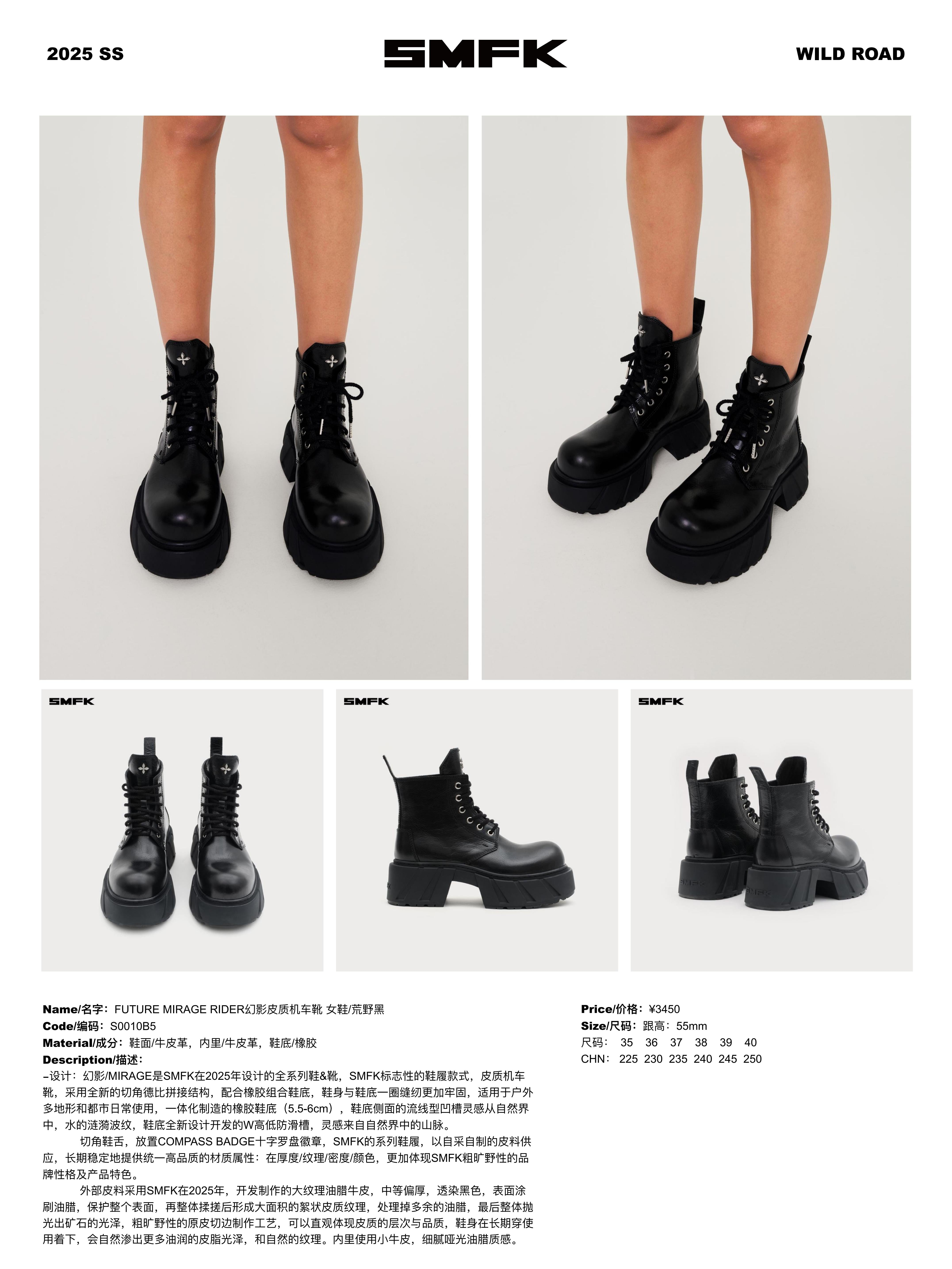 SMFK 2504 幻影皮质机车靴女鞋/荒野黑(偏大一码)