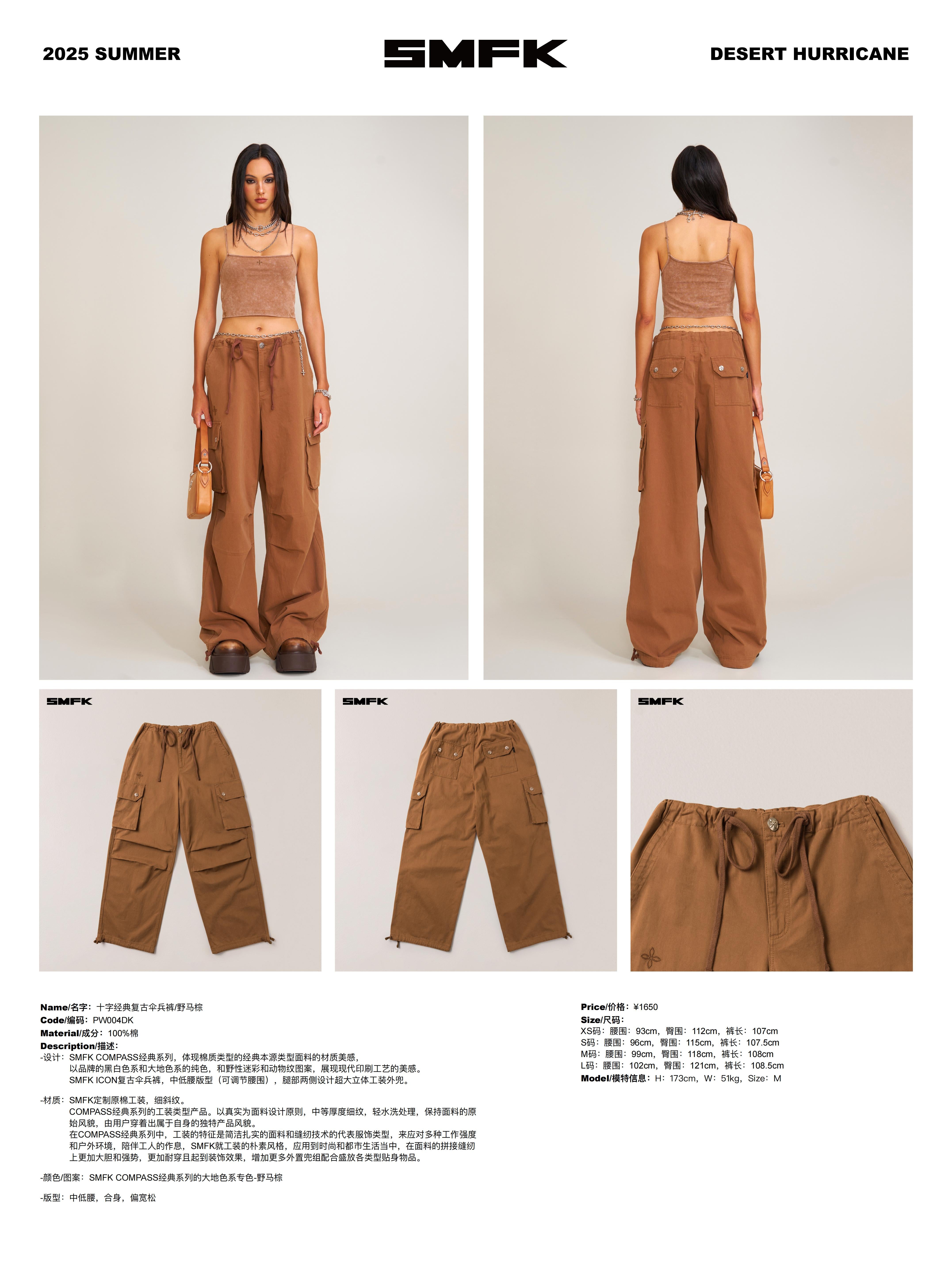 SMFK 2506 十字经典复古伞兵裤/野马棕