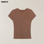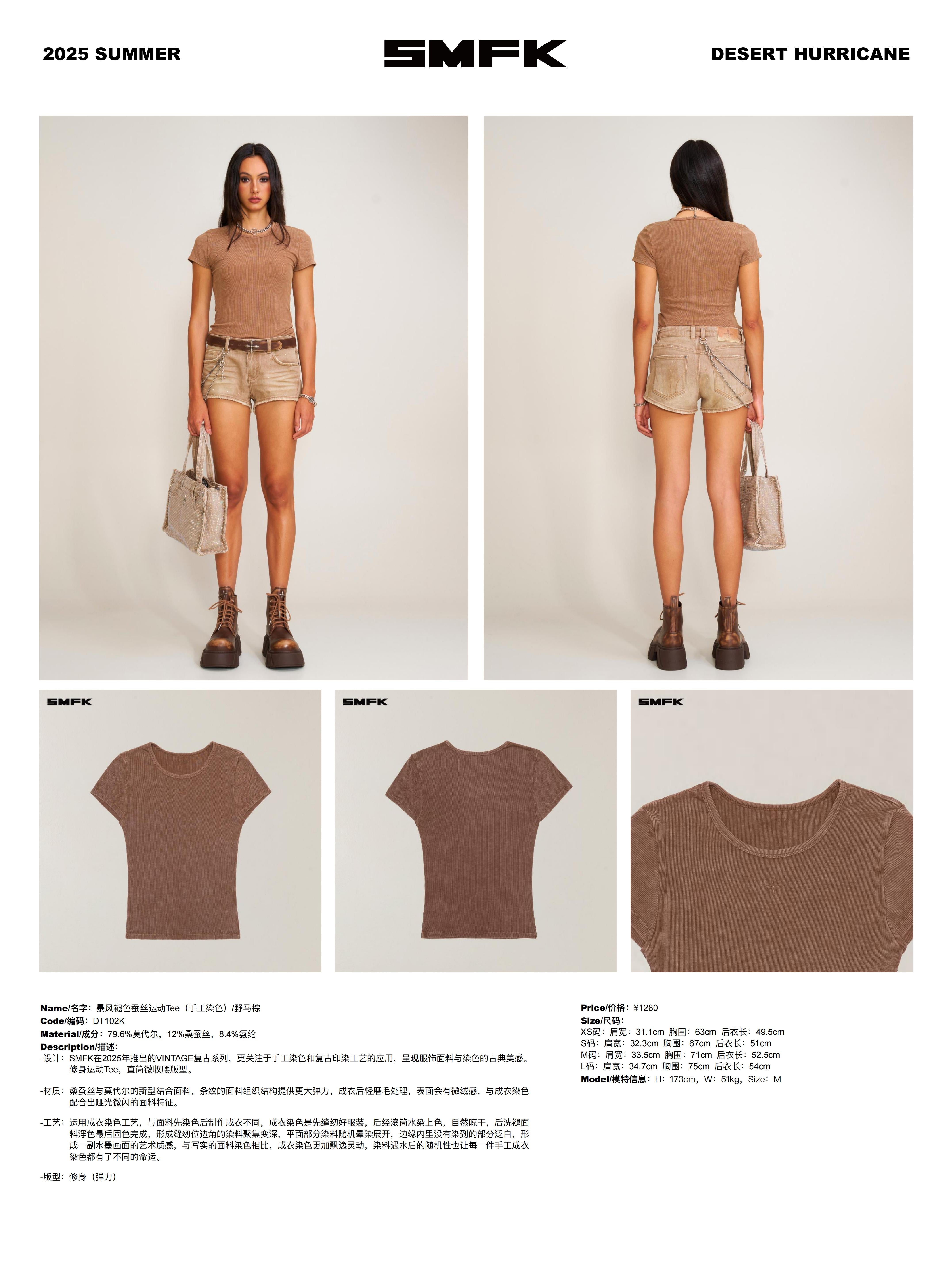 SMFK 2506 暴风褪色蚕丝运动Tee(手工染色)/野马棕