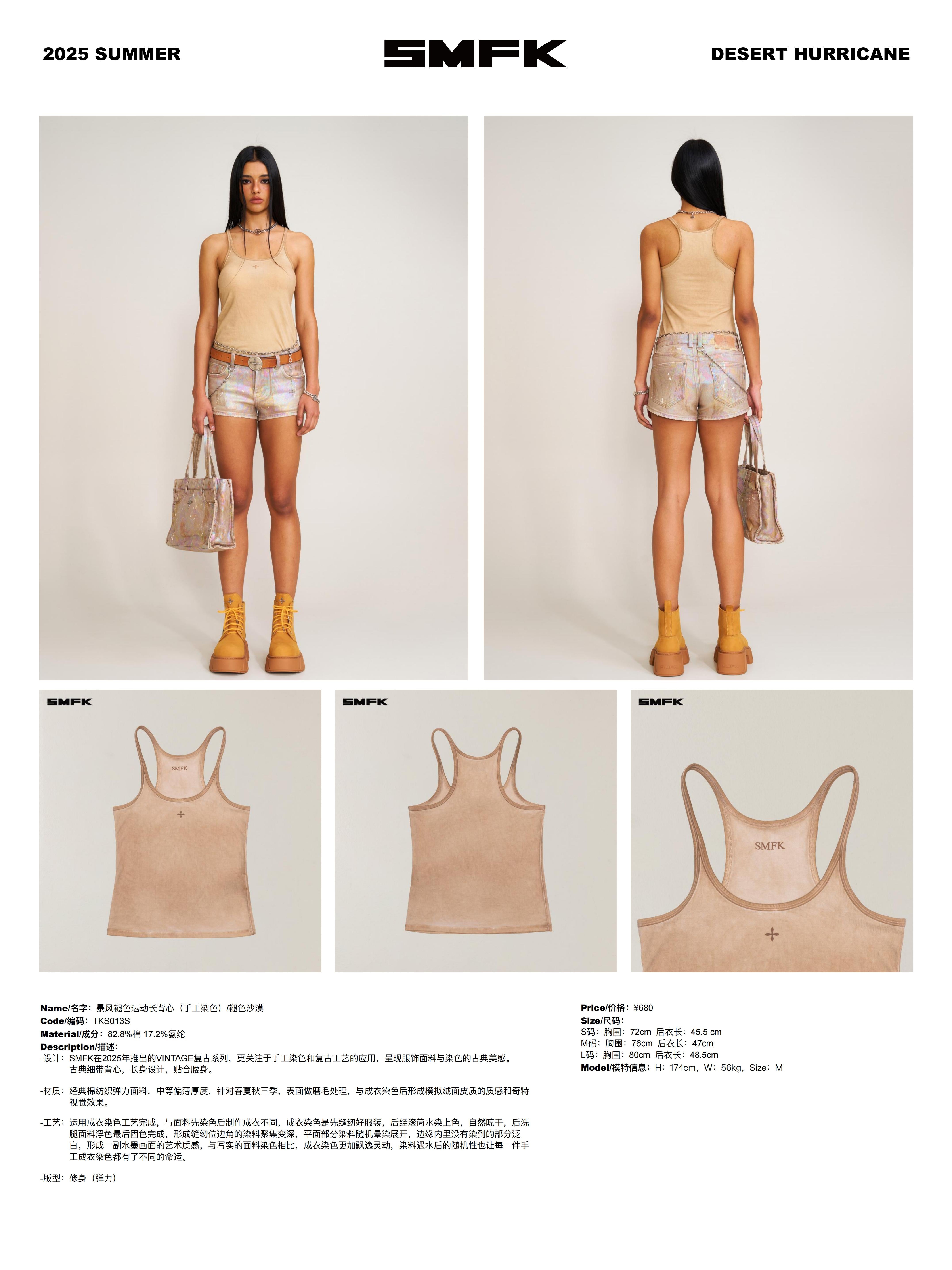 SMFK 2506 暴风褪色运动长背心(手工染色)/褪色沙漠
