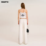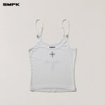 SMFK 2510 十字印章醋酸紧身吊带 白