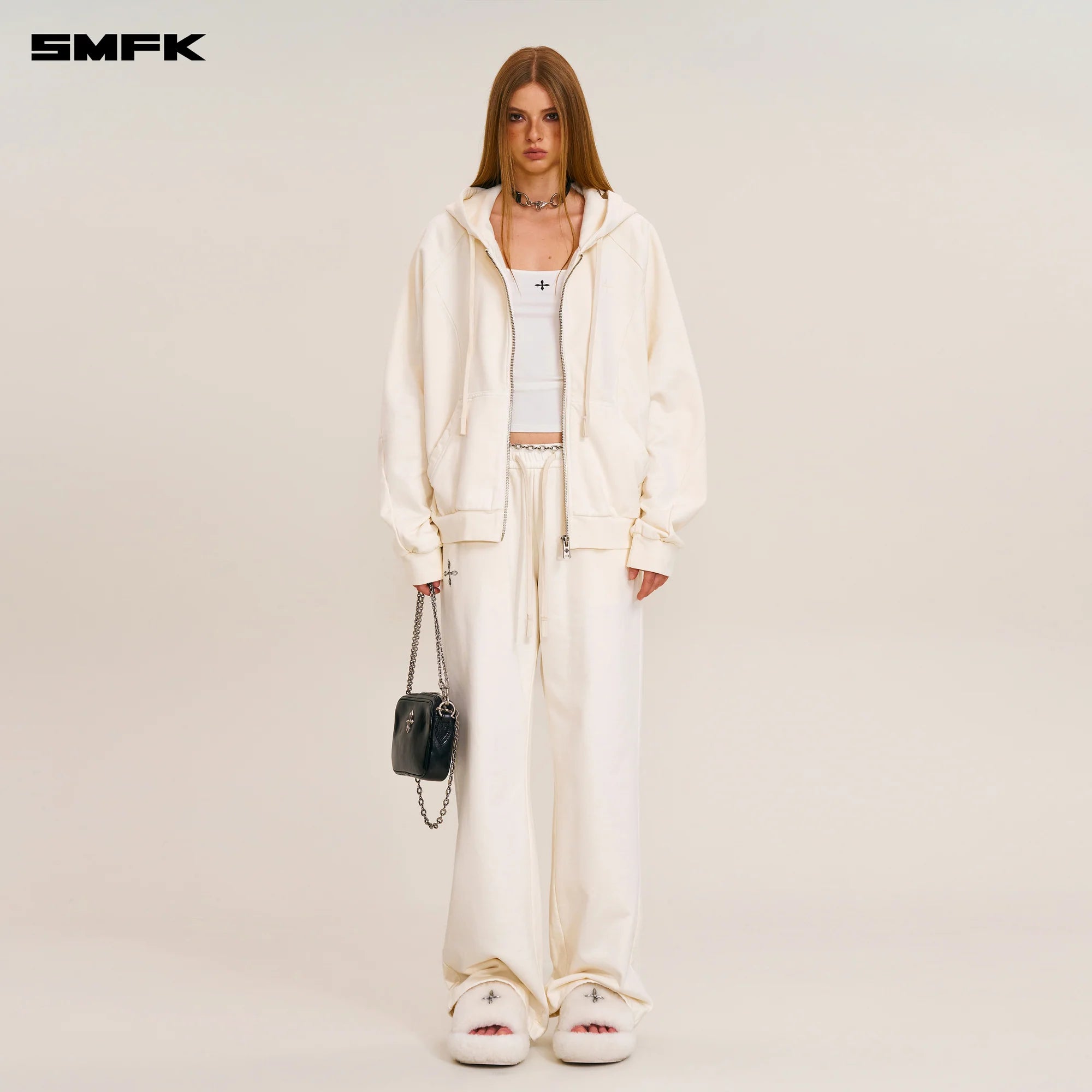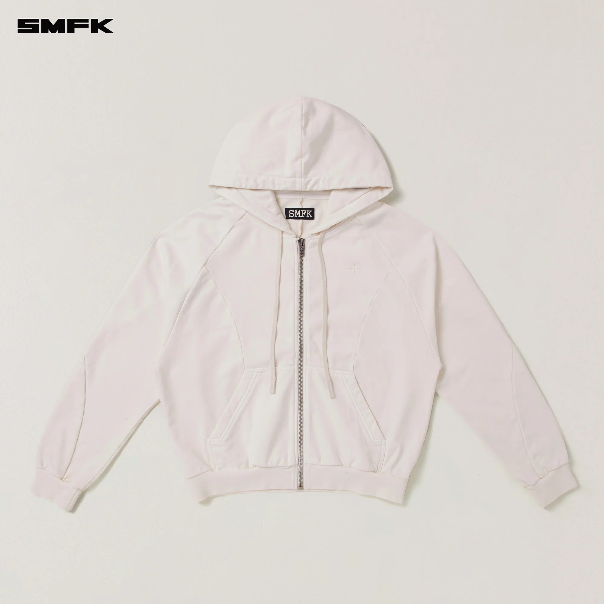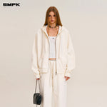 SMFK 2510 野性复古阔身运动拉链帽衫 雪山白