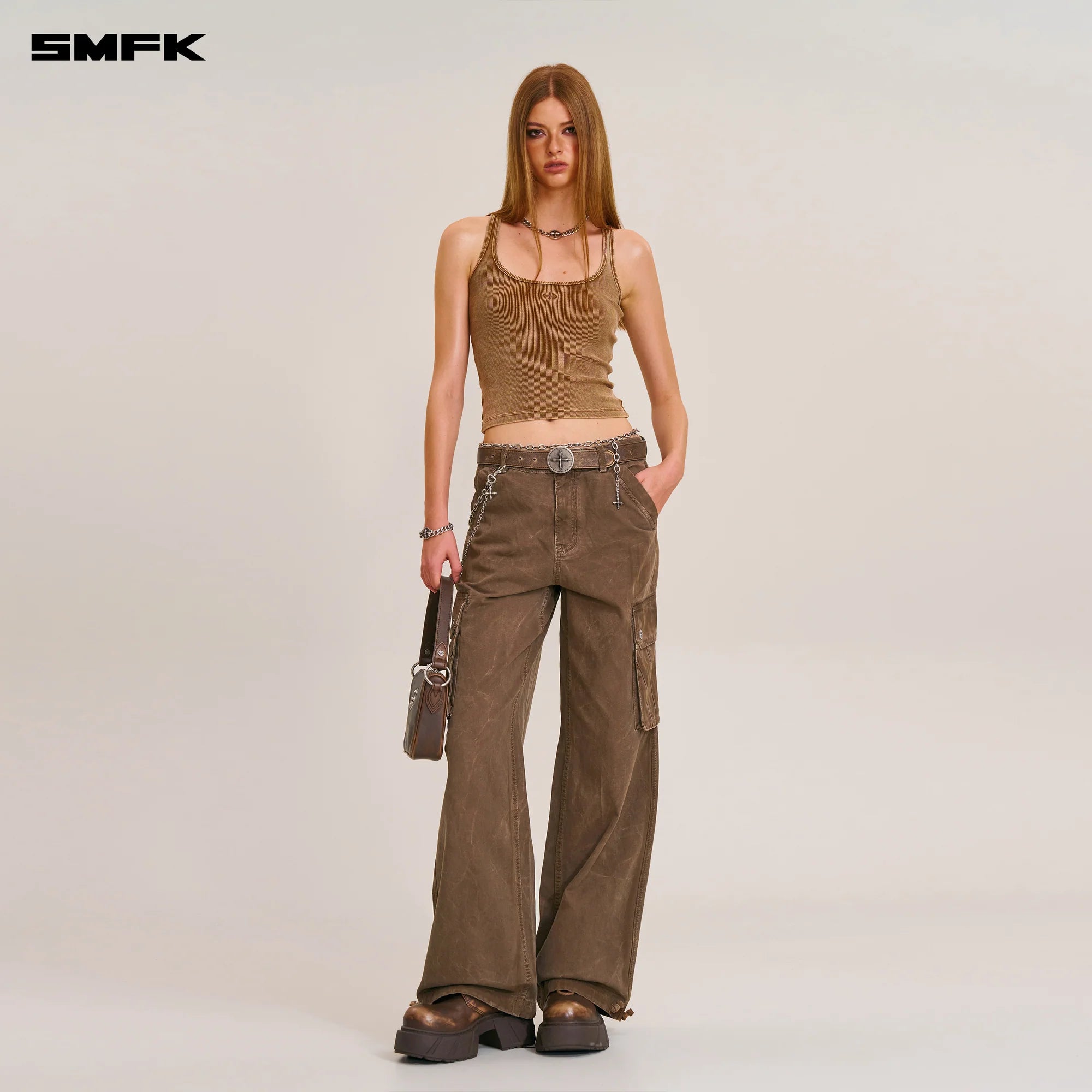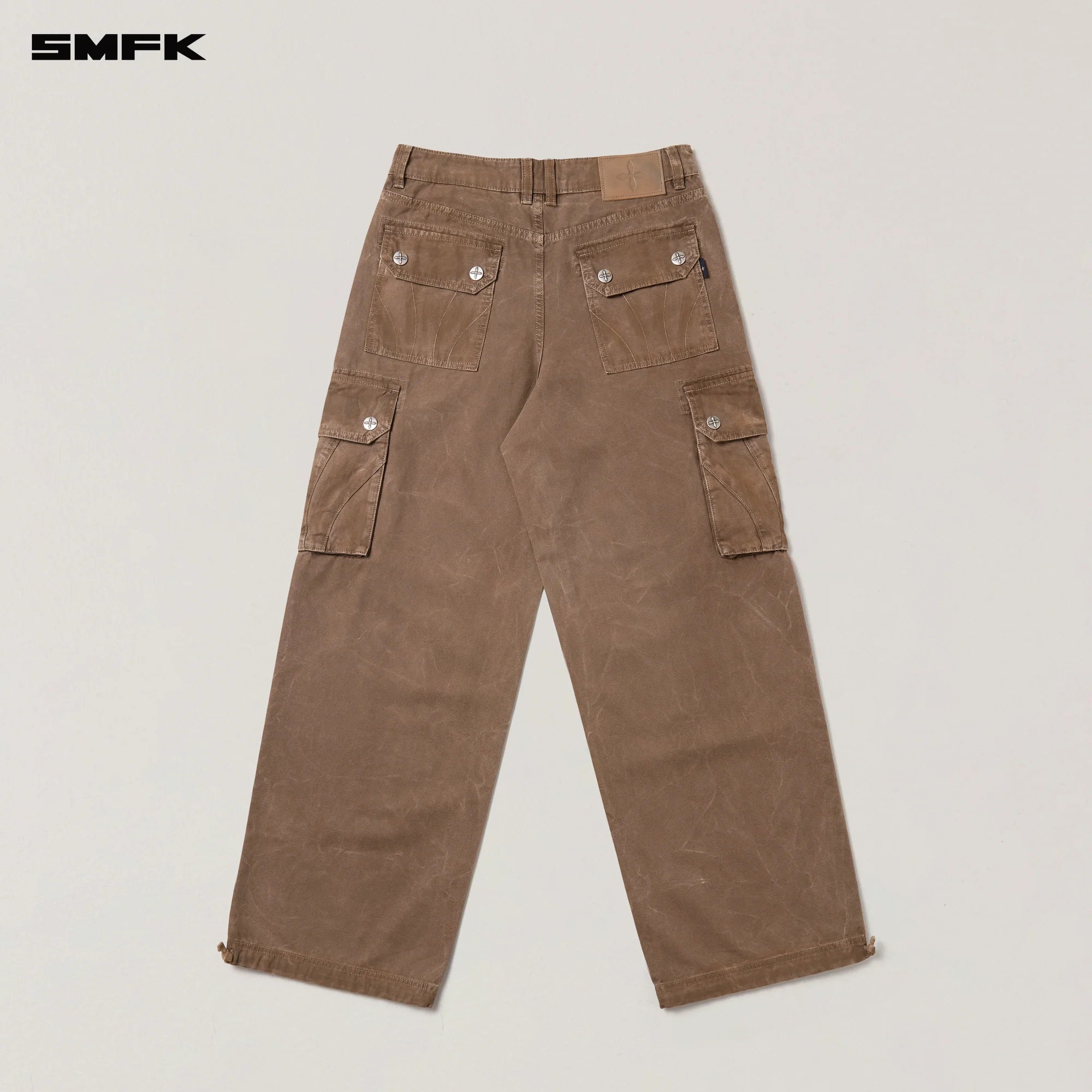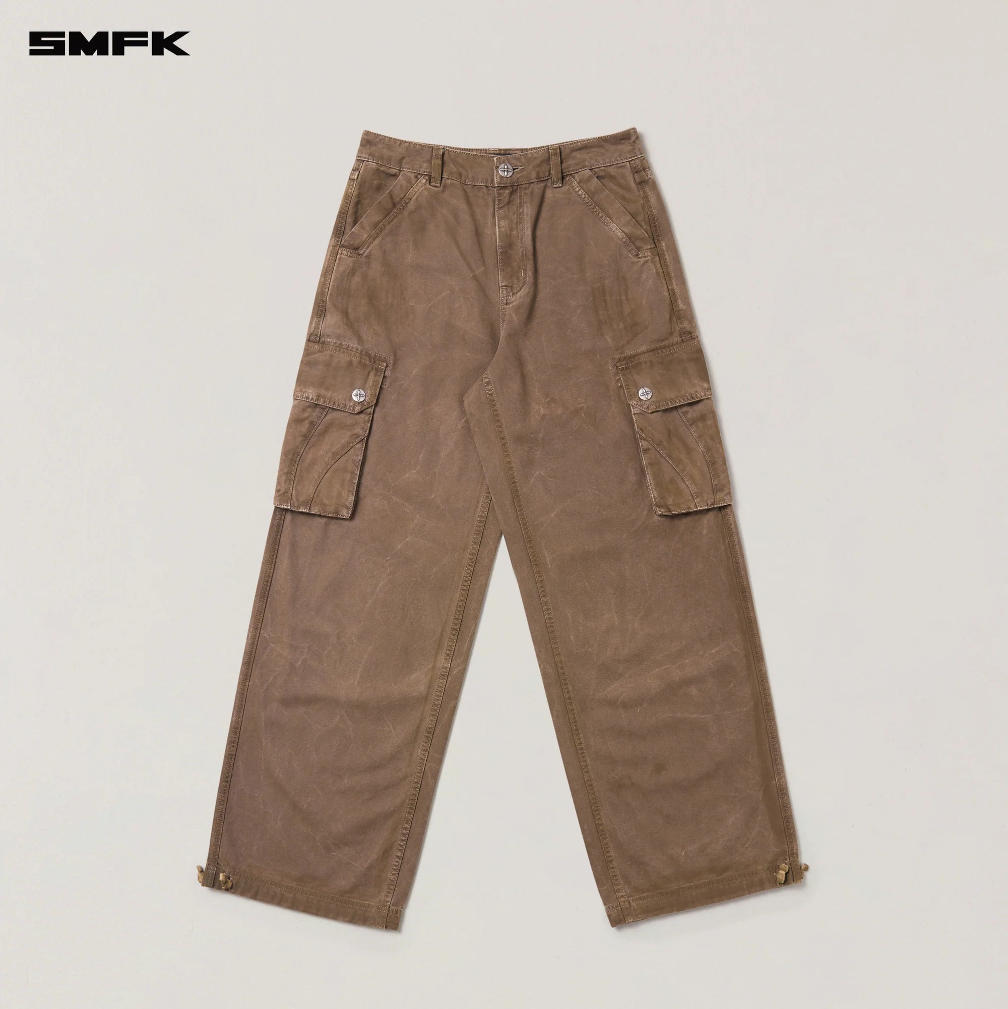 SMFK 2510 野性起源手工染色宽直筒工装裤 影棕