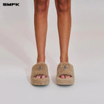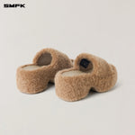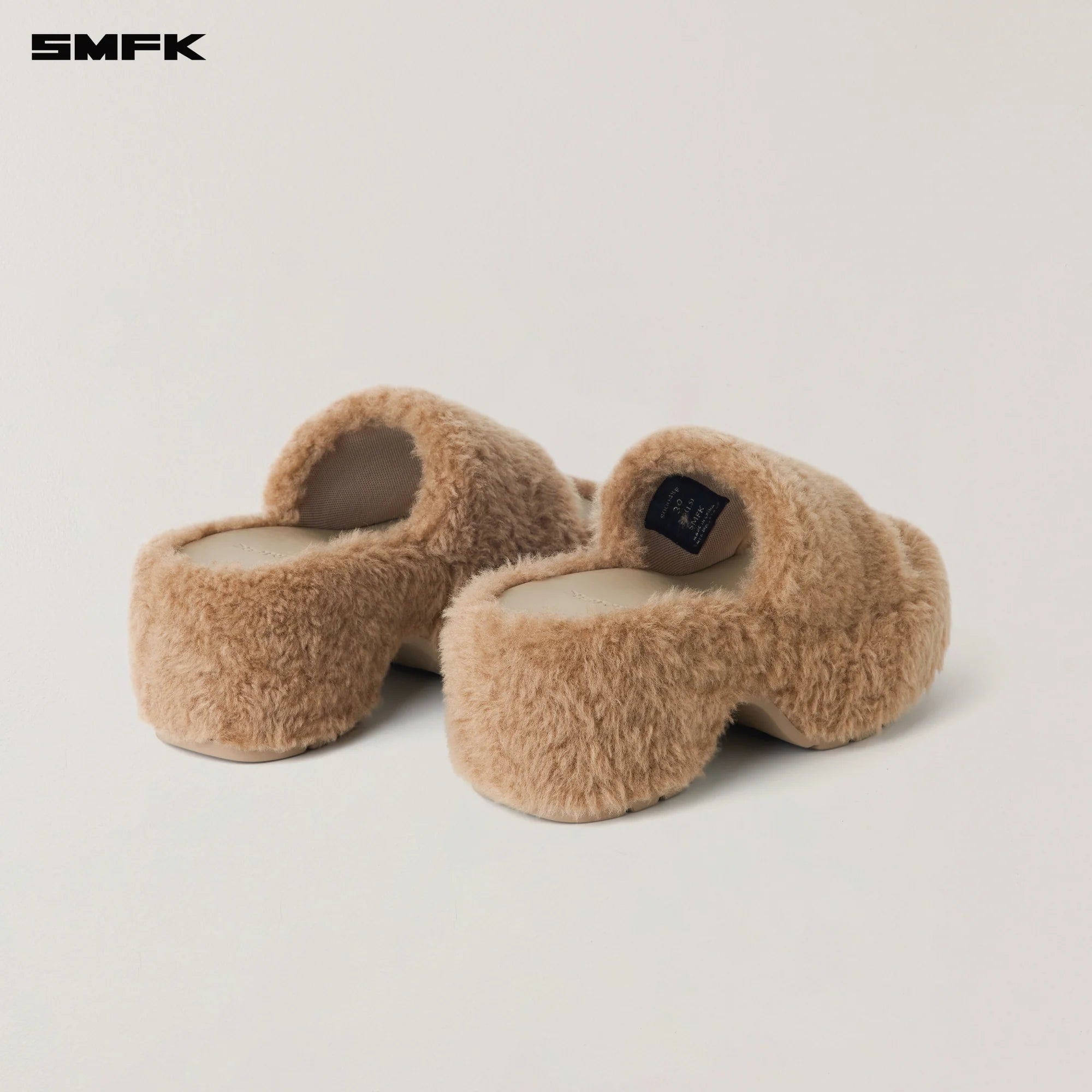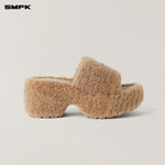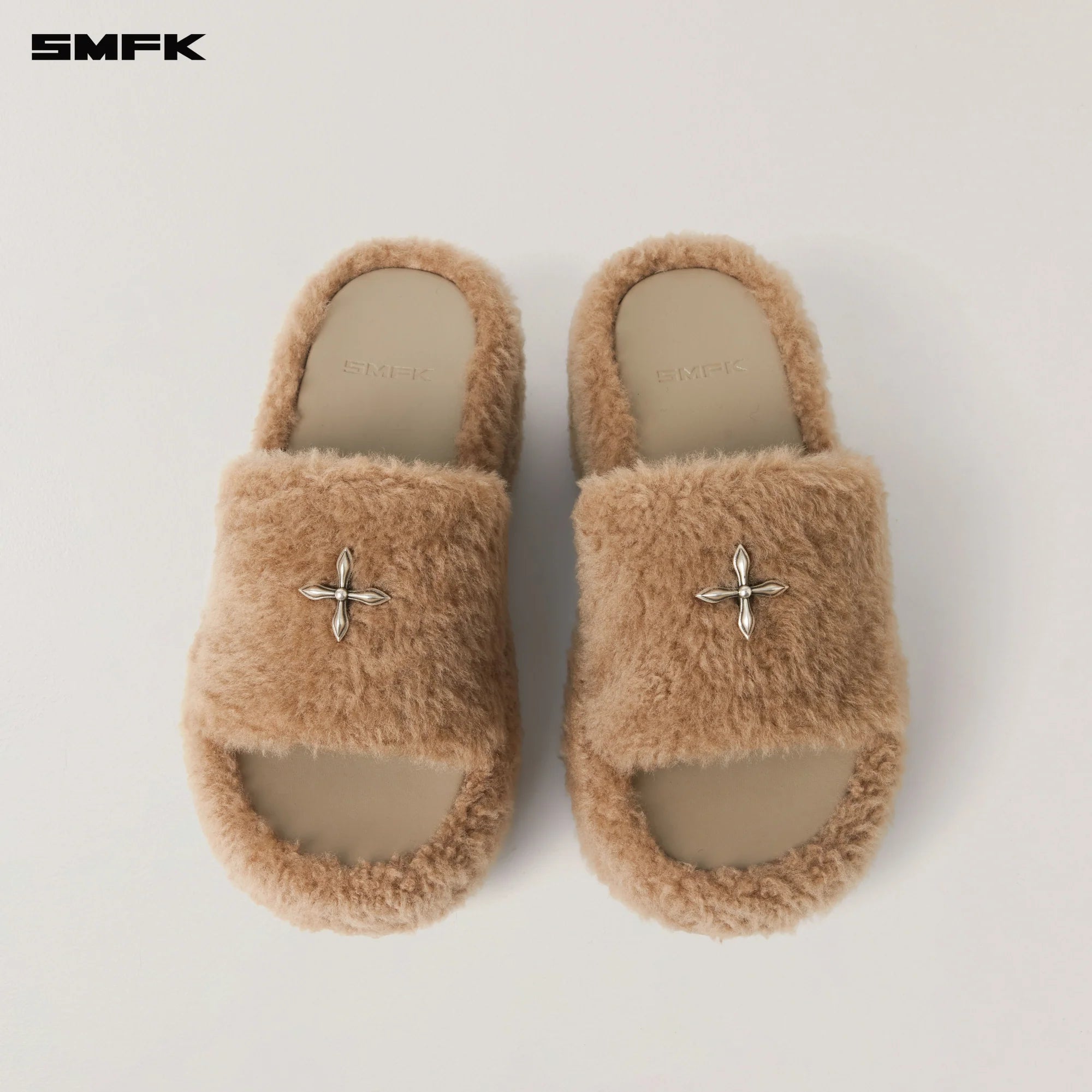 SMFK 2511 十字雕像皮毛一体高跟拖鞋 沙漠
