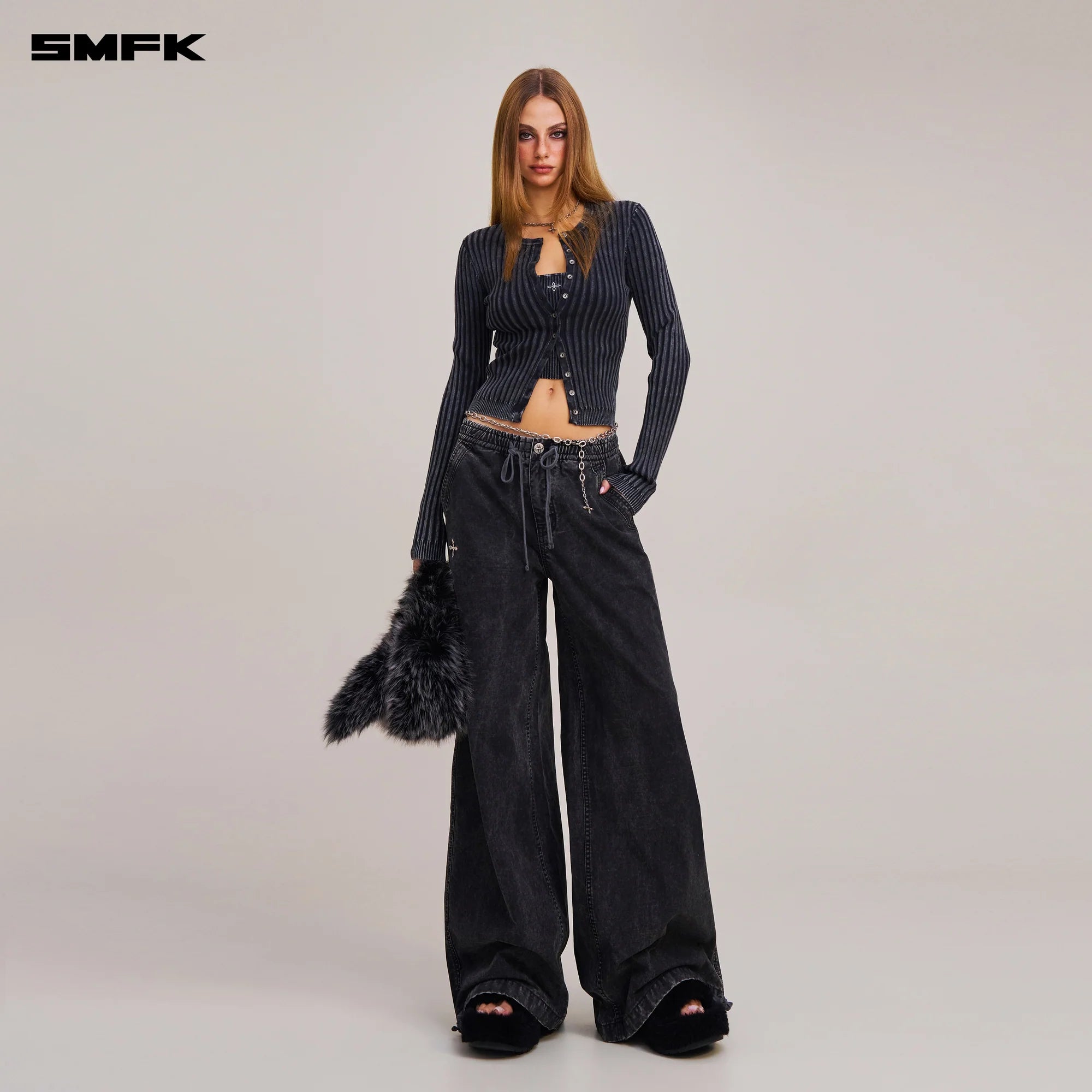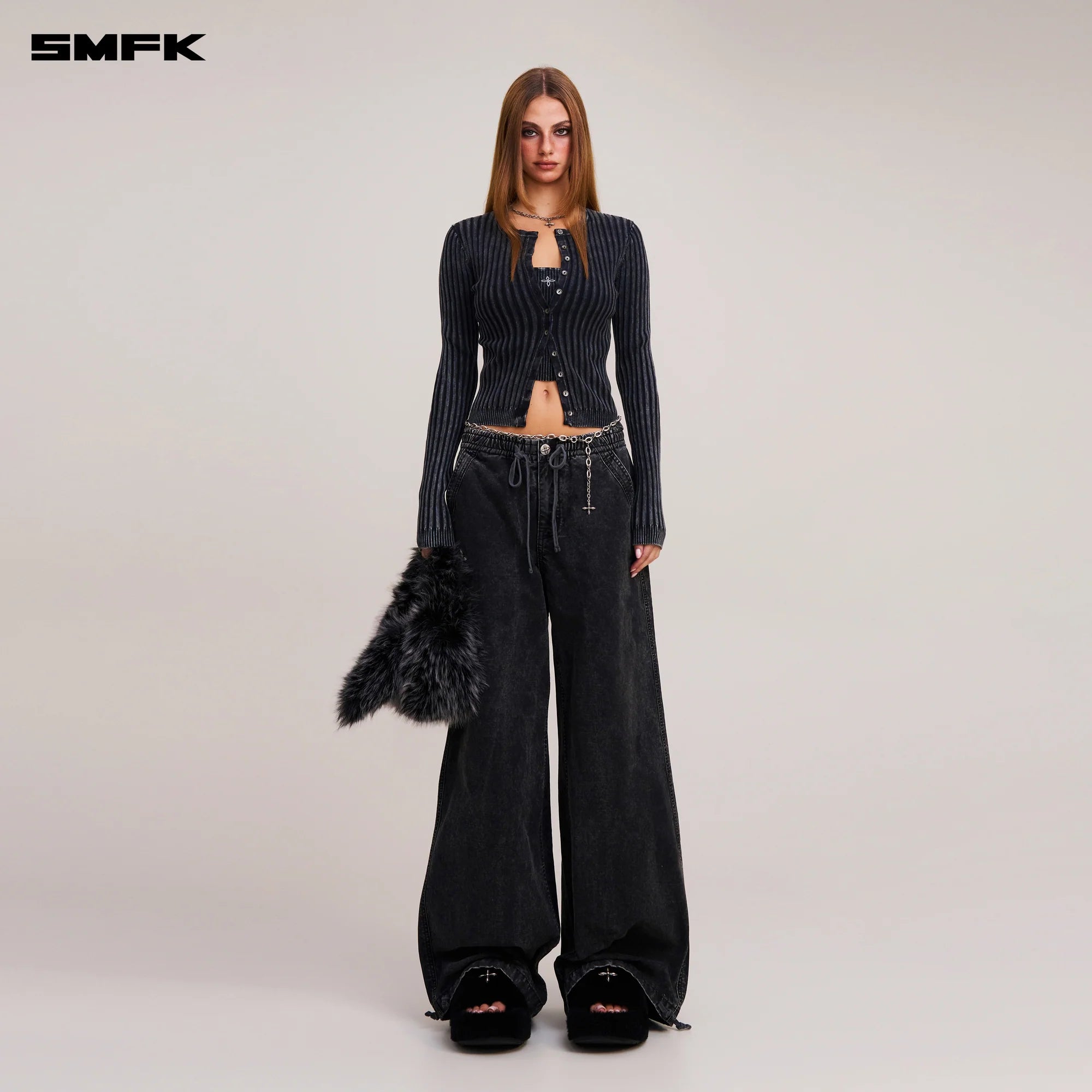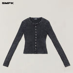 SMFK 2512 野性复古纽扣针织开衫 湮灭黑