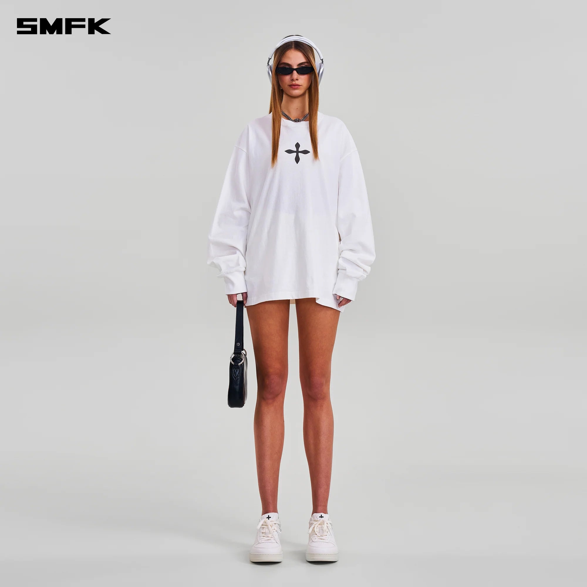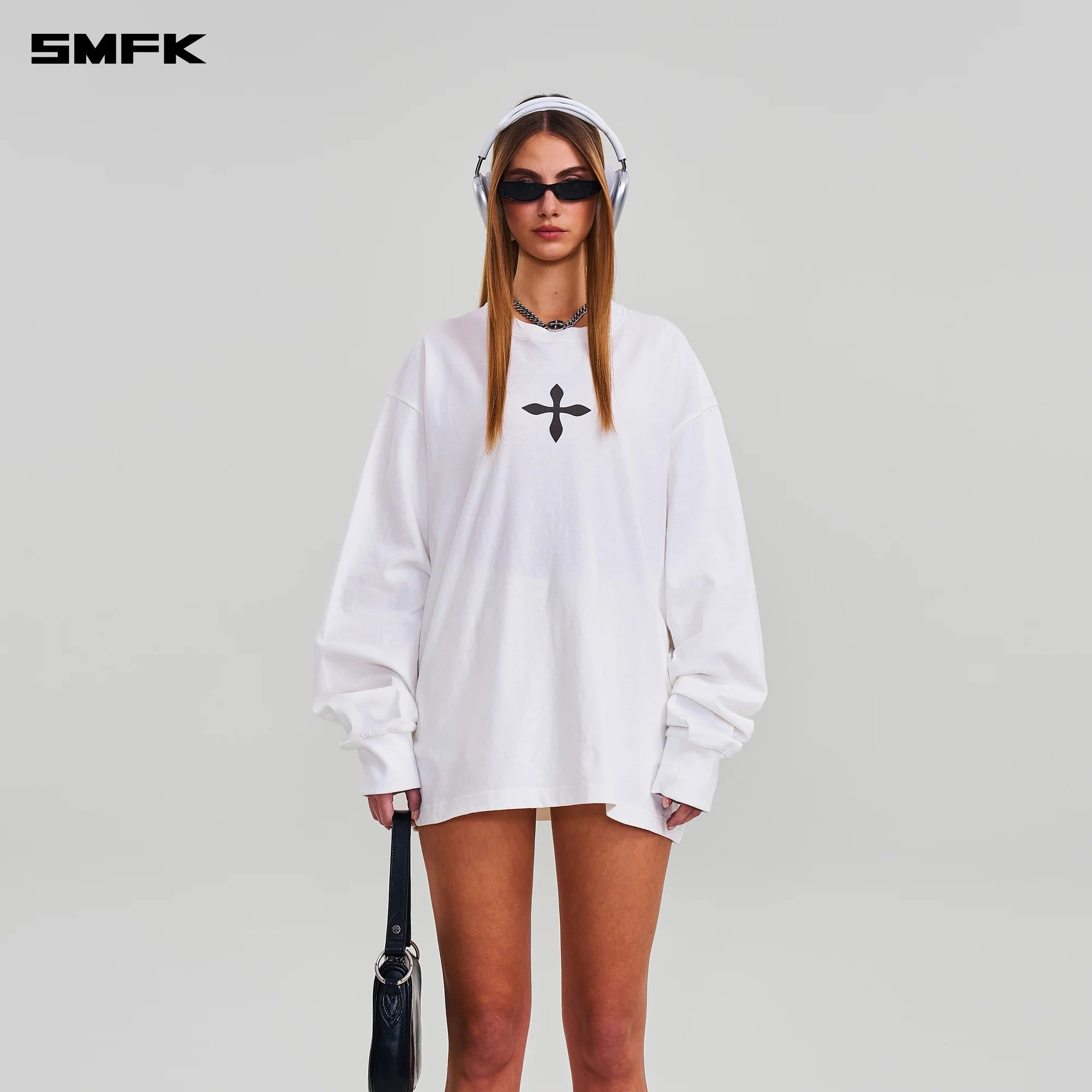 SMFK 2602 十字雕像巨型长袖上衣 云白