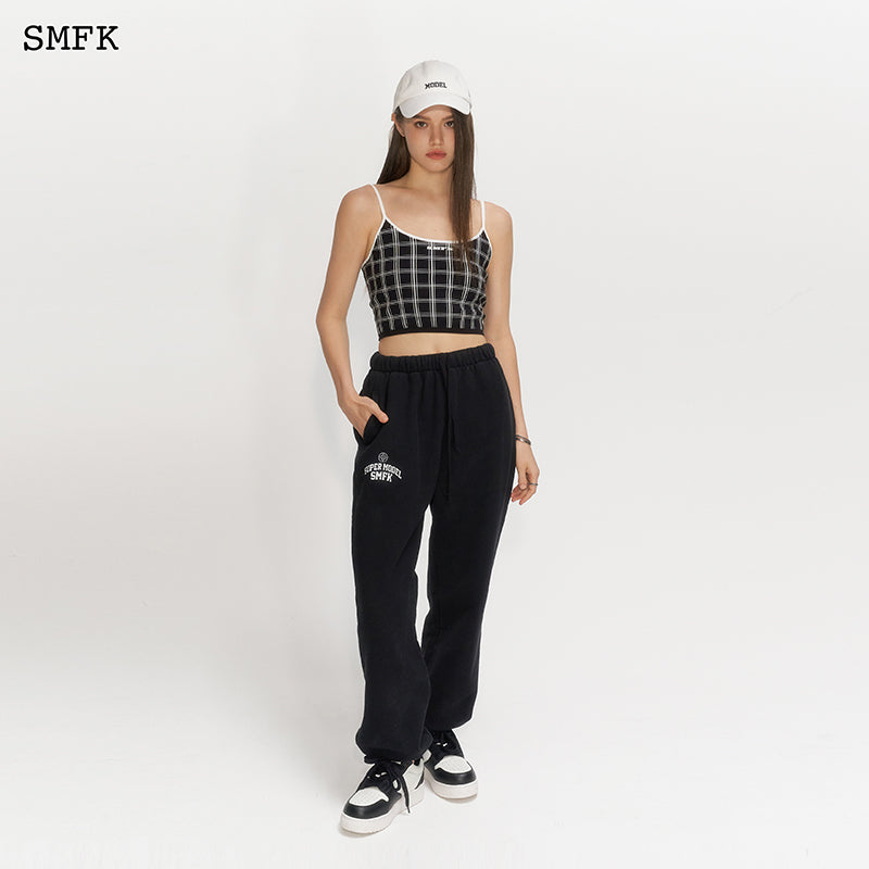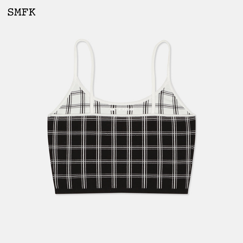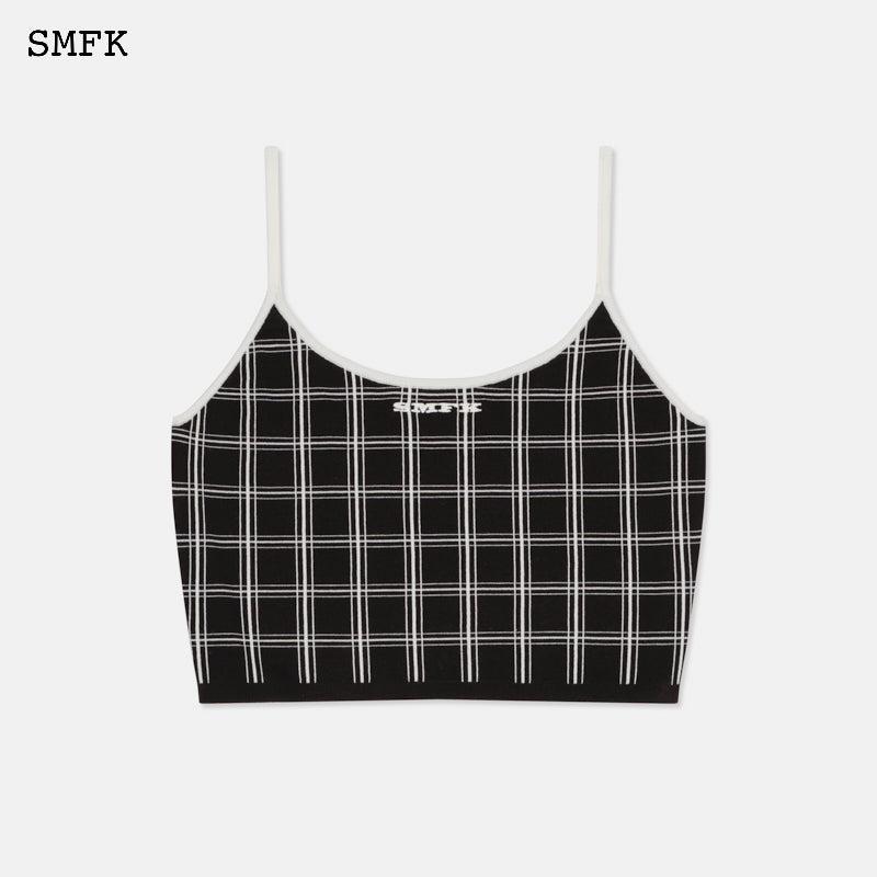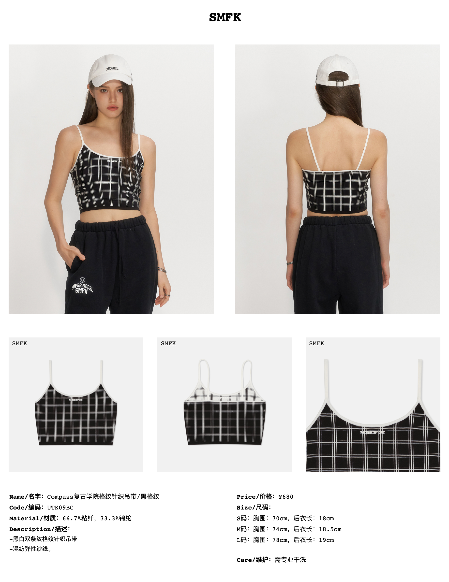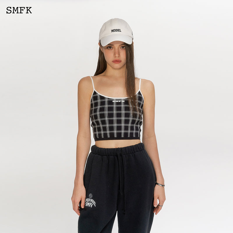 SMFK SS2303 复古学院格纹针织吊带 黑